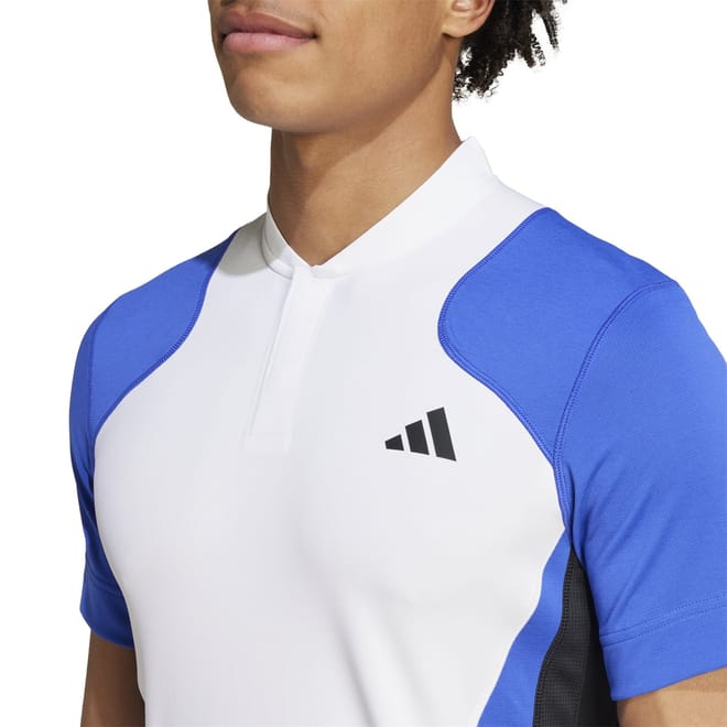 Unleash your inner strength with the Tennis HEAT.RDY Freelift Polo Shirt Pro. This slim-fit, short-sleeved polo shirt has been thoughtfully designed with 100% recycled polyester knitted stretch fabric and an innovative Freelift pattern for unrestricted movement on the court. Bold colour blocking reflects tennis-specific movements, alongside a sleek bonded snap button placket and a prominent performance logo at the chest for instant recognition.