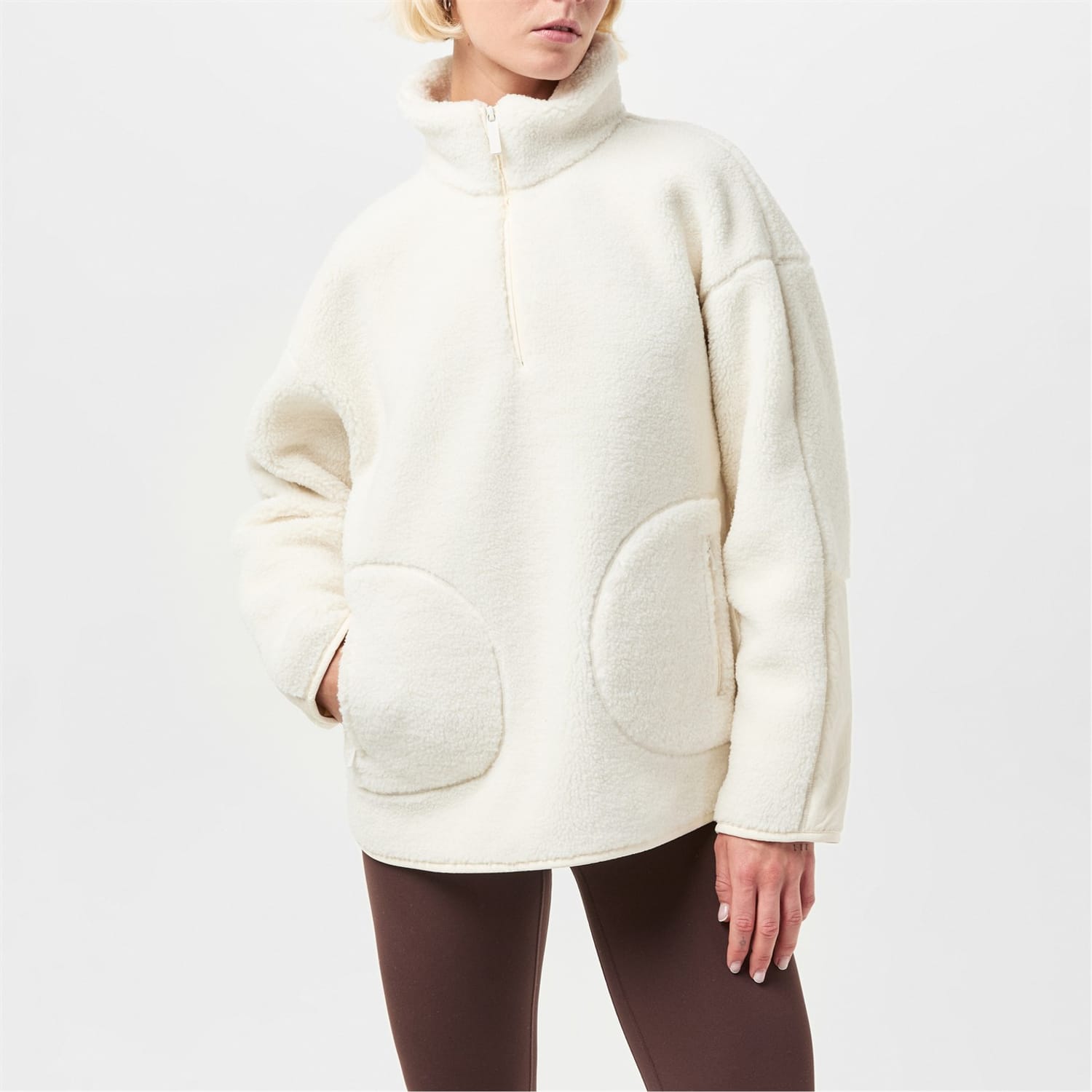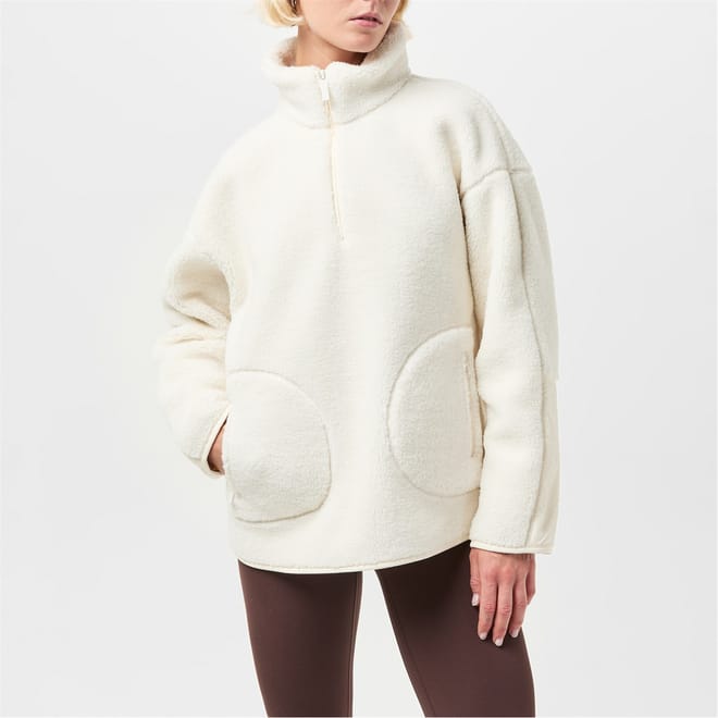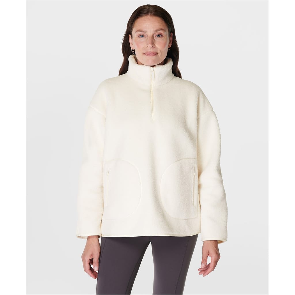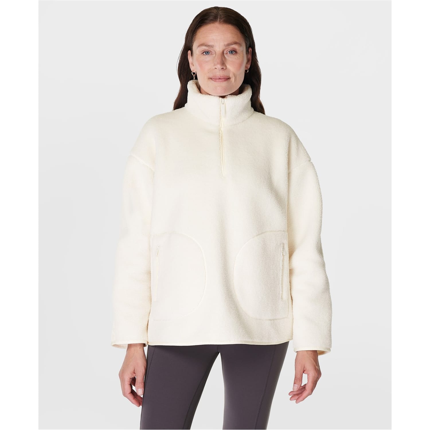Discover the Sweaty Betty textured top, featuring a relaxed fit and a funnel neck. This long sleeve design includes a drop shoulder style and ribbed cuffs for added comfort. The top is equipped with a convenient zipper closure and a practical pocket, making it a versatile addition to your wardrobe. -
