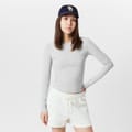 Sweaty Betty's slim fit top is perfect for both casual and activewear collections. Featuring a crew neck and long sleeves, this solid pattern design is enhanced with a logo embellishment, offering a sleek and modern look. -