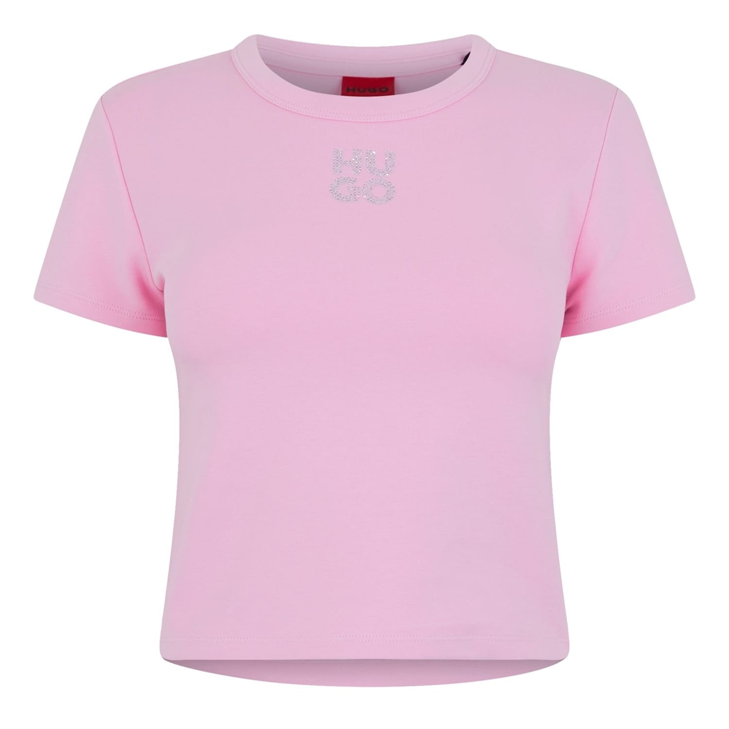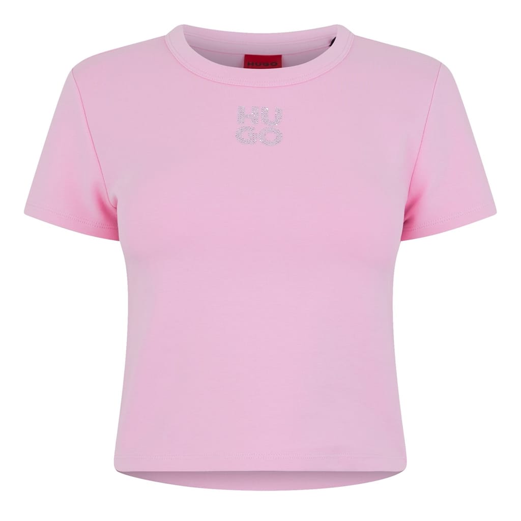 This Hugo t-shirt is a stylish addition to your wardrobe. Crafted in a short sleeve design with a crew neck, it features a relaxed fit and a solid pattern. The cropped length adds a modern touch, while the subtle logo embellishment provides a refined finish. -