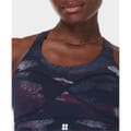 Sweaty Betty's activewear top features a stylish camo pattern and a scoop neckline. This sleeveless design is perfect for sporting activities, offering both comfort and functionality. The top is adorned with a subtle logo embellishment, adding a touch of brand identity to your workout ensemble. -