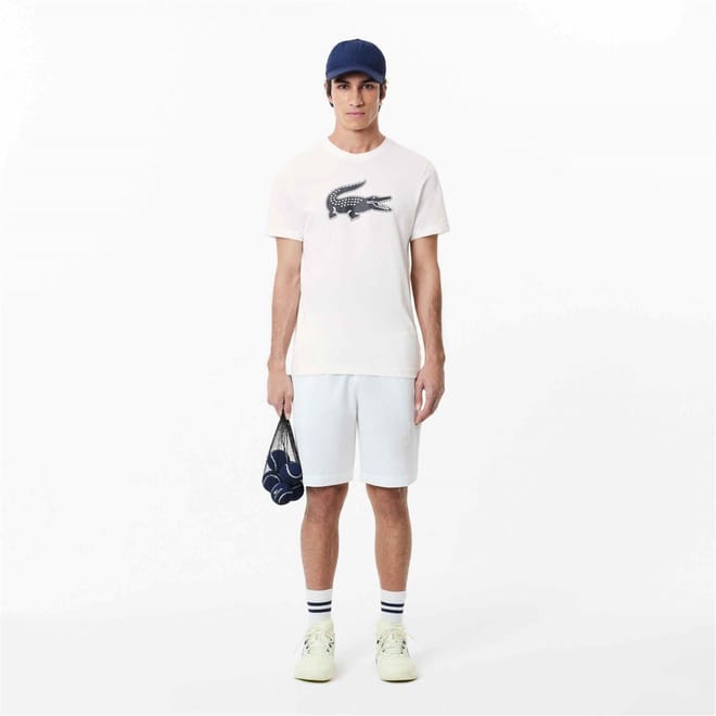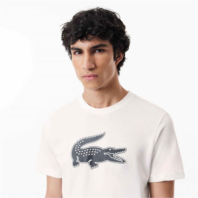 Refresh your wardrobe with the Large Croc II T Shirt from Lacoste. Crafted in a soft cotton/polyester mix construction, this t shirt is cut in a regular fit and features a ribbed crew neckline with short sleeves, a straight hemline and elasticated trims for comfort. Designed in a colour block throughout, the look is finished with the brand's logo printed to the front for brand recognition. Body: 65% cotton, 35% polyester. Collar: 50% cotton, 50% polyester. Machine washable at 30 degrees.