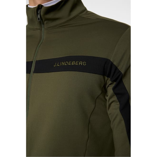 Elevate your collection with this J.Lindeberg Golf Jarvis Jacket. Crafted with full zip fastening and long sleeves for a secure fit, it features two hand pockets for a classic look. This jacket is designed with a signature logo and is complete with J.Lindeberg Golf branding. -