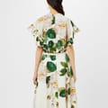 This Giambattista Valli midi dress showcases an elegant A-line silhouette, perfect for any occasion. The dress features a crew neck and short ruffle sleeves, adding a touch of sophistication. Adorned with a beautiful floral pattern, it embodies a timeless charm. The ruffle embellishments further enhance its graceful appeal, making it a standout piece in any wardrobe. -