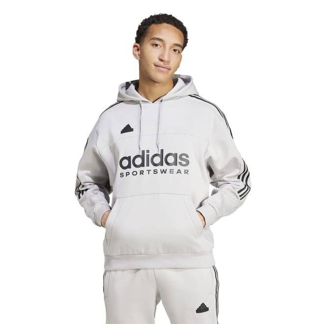 Cosy up in this adidas House of Tiro Fleece Hoodie and embrace a laid-back sport style. Soft fabric keeps the chill at bay while the loose fit allows free movement. A kangaroo pocket provides a place to warm up cold hands or stash small essentials. Whether you're heading out to watch the match or relaxing at home, this hoodie complements your casual vibe.