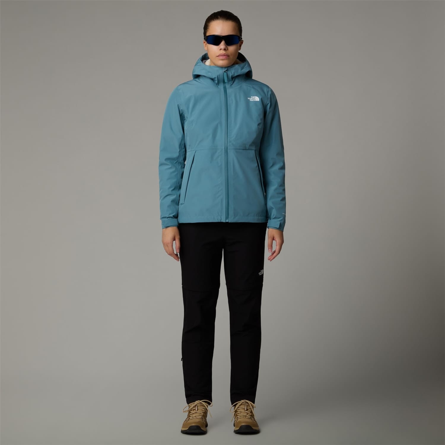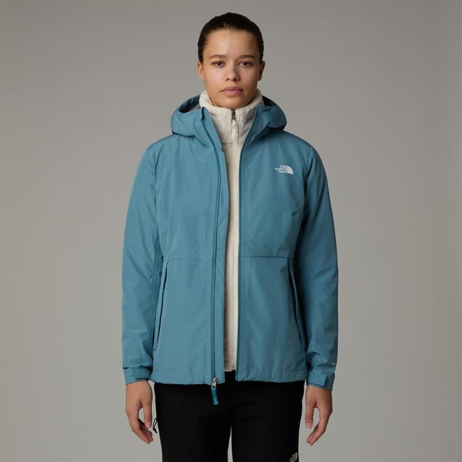 Stay dry and comfortable with the North Face rain jacket. This water-repellent jacket features a hooded design, zipper closure, and elasticated cuffs for added protection. The regular fit ensures ease of movement, while the solid pattern offers a sleek look. Finished with the signature logo, this jacket is a reliable choice for wet conditions. -