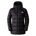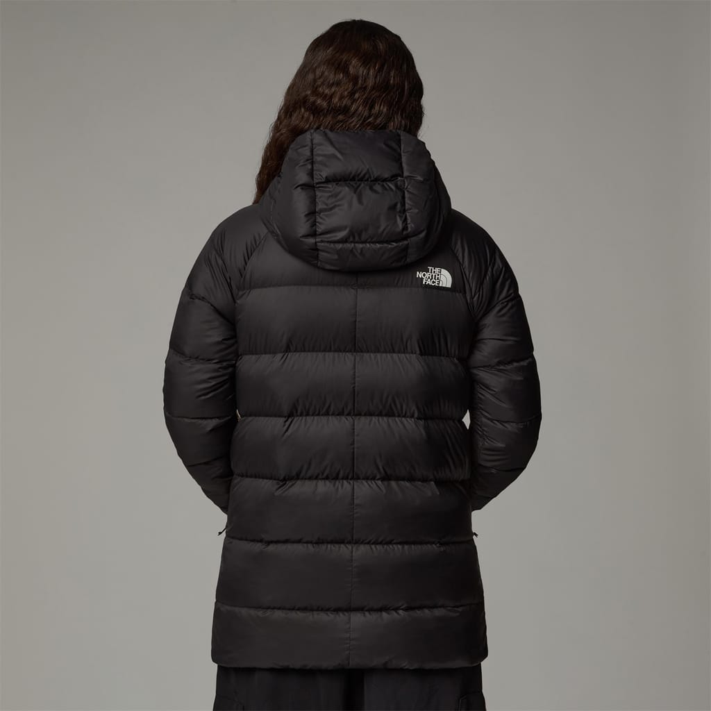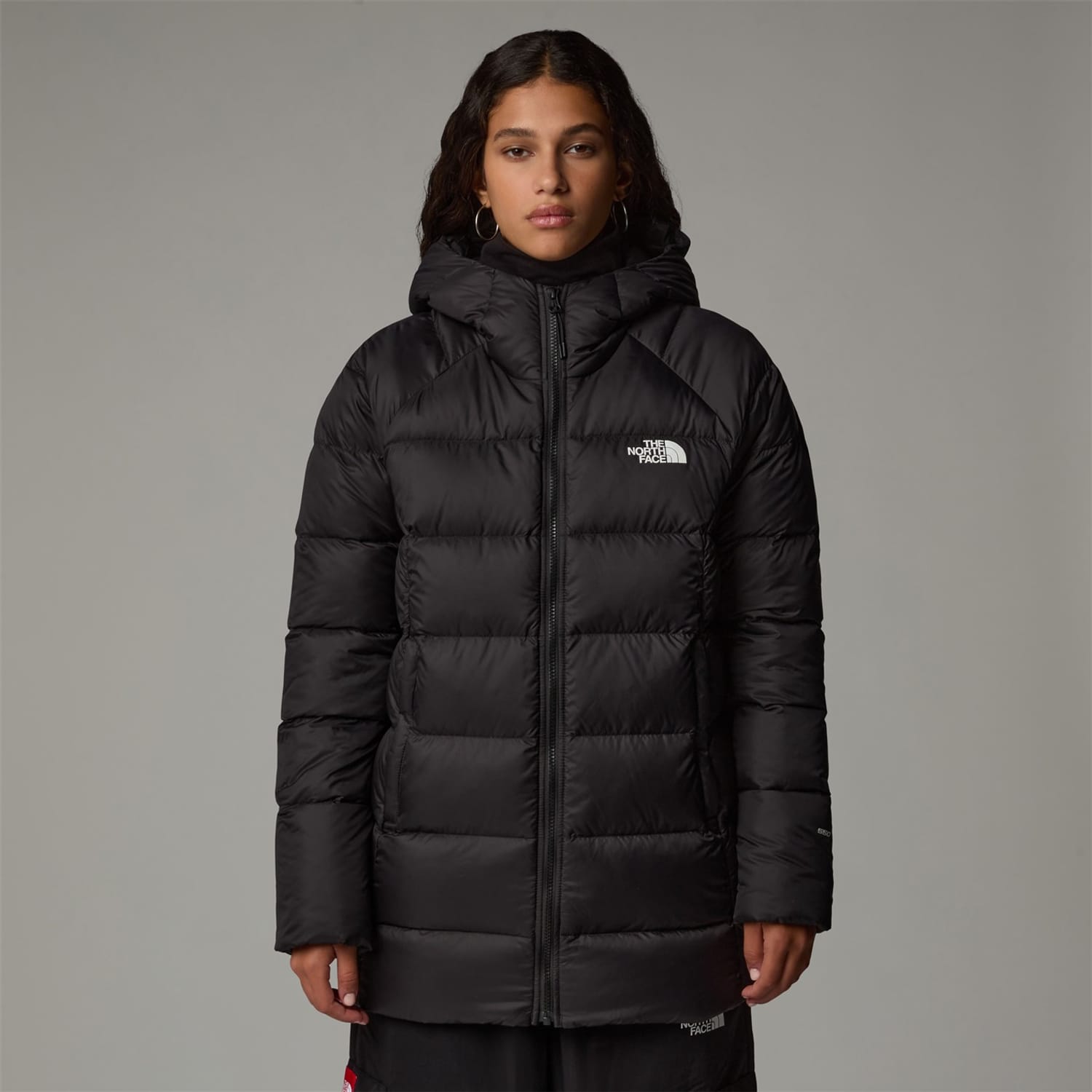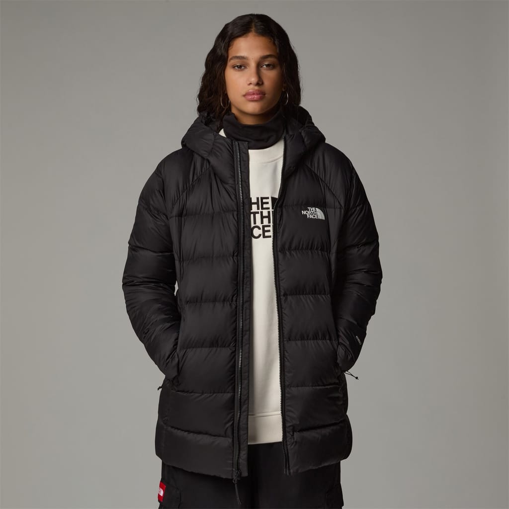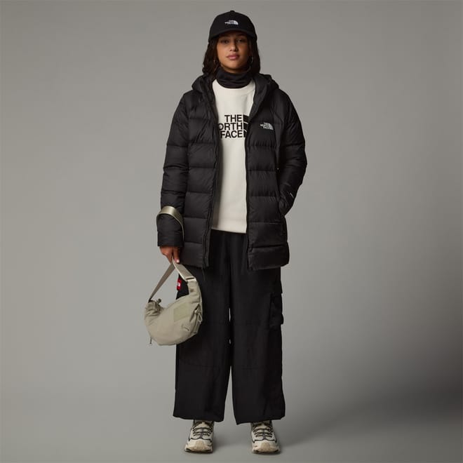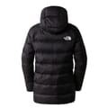 Discover the North Face parka jacket, designed for sport and casual collections. Crafted with a relaxed fit, it features a hooded neckline and a zipper closure. The solid pattern and logo embellishment add to its appeal. This puffer style offers both functionality and style, making it an ideal choice for various occasions. -
