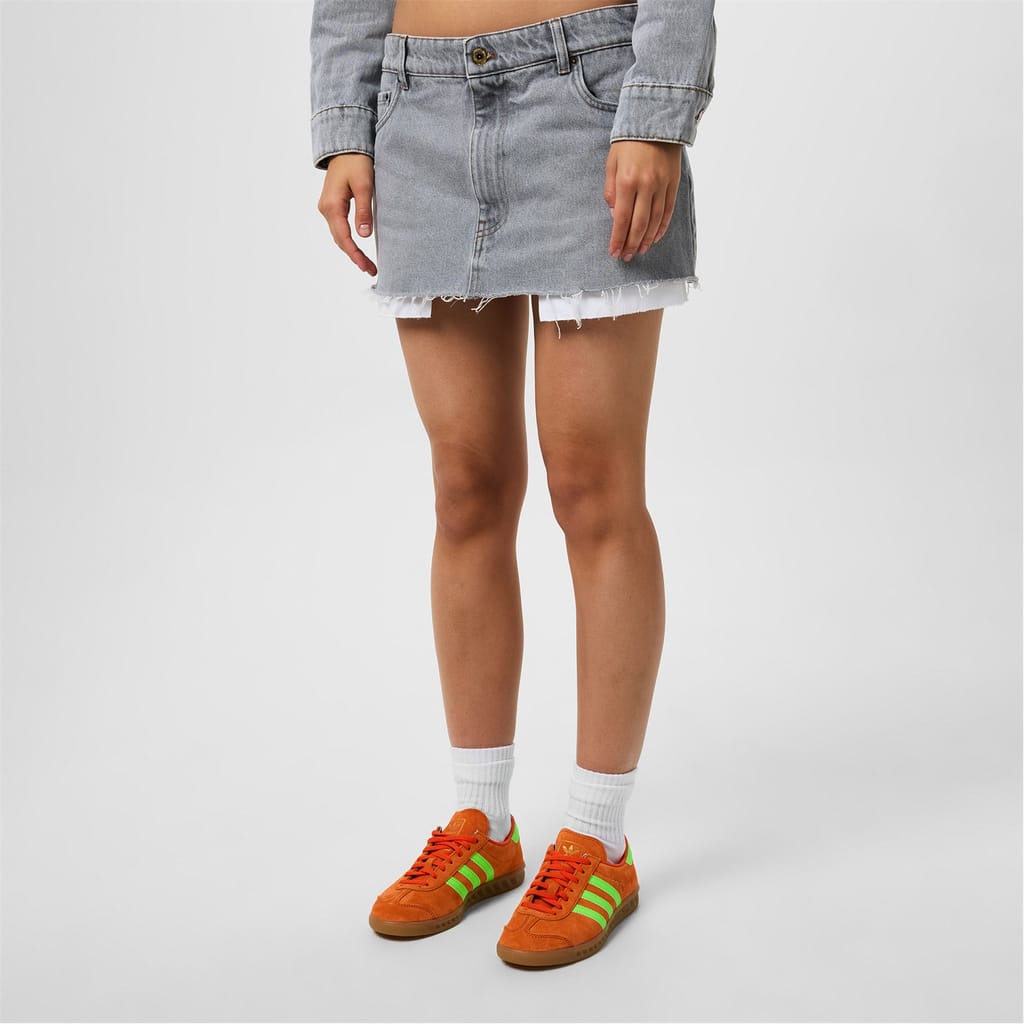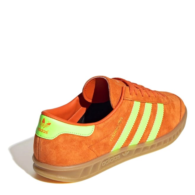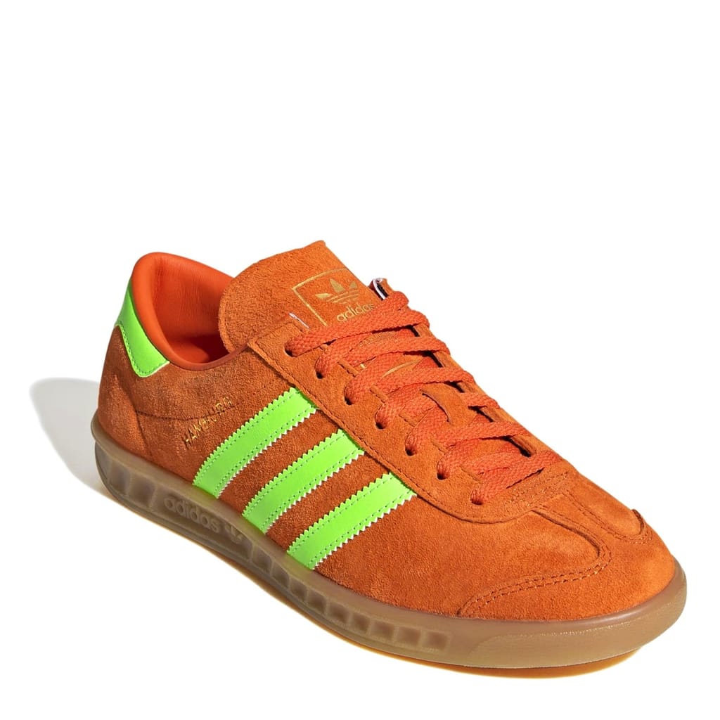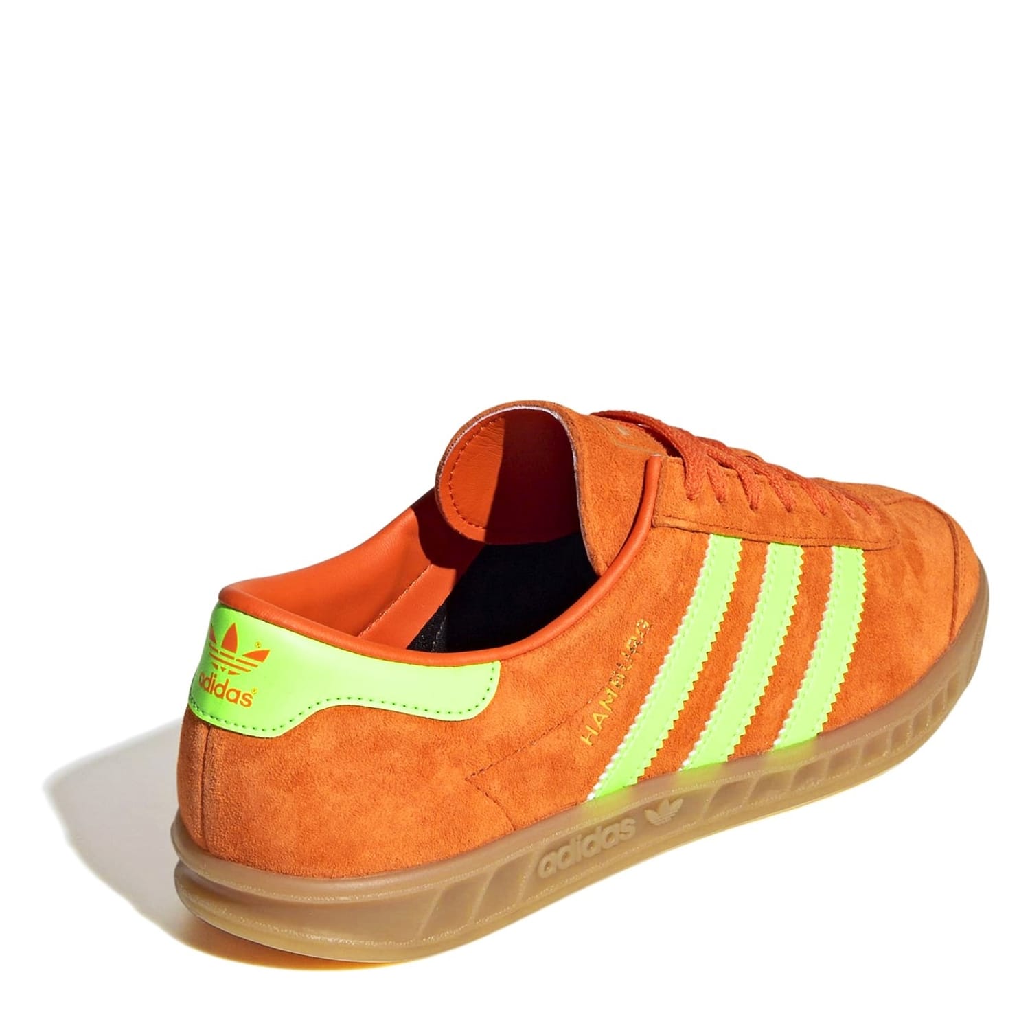 - The solid block colouring delivers an exceptional foundation to style these ladies' leather trainers into any casual look, while the serrated 3-Stripes on the sides bring a sporty touch. adidas Originals' signature branding adorns the midsoles and tongues, completing the design and ensuring instant brand recognition. Whether meeting friends for brunch, running errands or looking to elevate your everyday wardrobe, choose adidas Originals' retro-flavoured Hamburg Shoes. -
