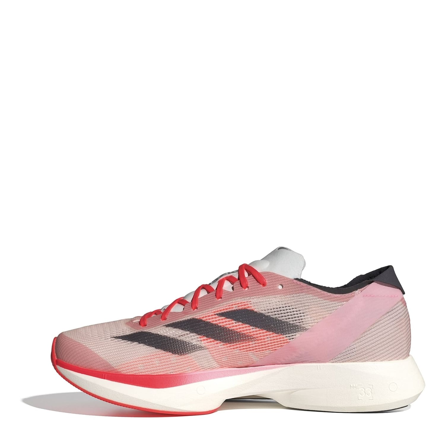 Designed exclusively for speed, the adidas Adizero Takumi Sen 10 Running Shoes get you to the finish line in your fastest time. Featuring two layers of Lightstrike Pro cushioning and EnergyRods for a seamless transition toe-to-heel, these lightweight shoes provide moderate cushioning for a smooth transition from corners to straights. Crafted with a lightweight mesh to the low profile upper, these women's running trainers are built to aid runners in chasing personal best times. Set upon a durable rubber sole for traction on light or fast runs, the full lace closure ensures a lock-down fit with each stride. With cushioning to protect on road surfaces and a snappy responsive feel, runners can attack a 10K with confidence in the Adizero Takumi Sen 10.