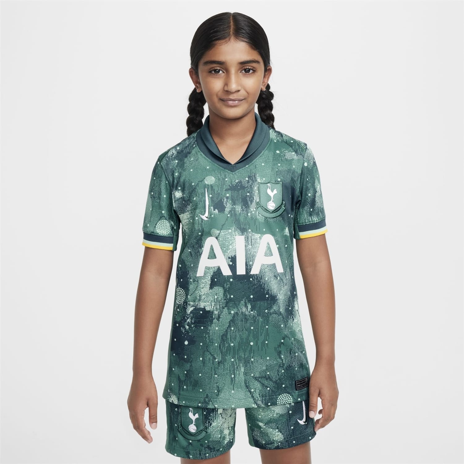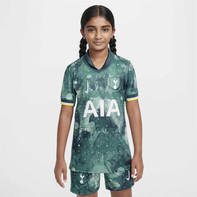 Treat your little champion to the Nike Tottenham Hotspur Third Shirt for the 2024/25 season. This replica shirt features an all-over print with a fold-down collar and ribbed cuffs for added comfort. Whether they're having a kickabout with friends or watching their favourite player at home, this shirt is the perfect choice for any Spurs fan.