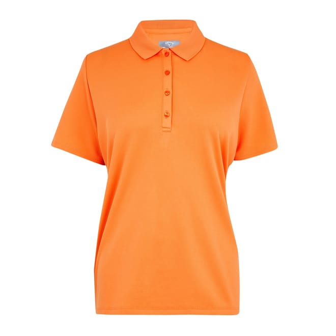 Callaway performance polo shirt with a short sleeve design, featuring a solid pattern and a polo collar. This regular fit top includes a button closure, offering a classic look suitable for various occasions. -