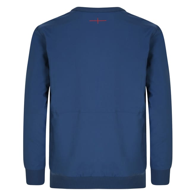 Stay comfortable and stylish with the Umbro knit rugby sweater. Featuring a solid pattern, this long-sleeve top is perfect for spring and summer. Designed with a crew neck, zipper closure, and raglan sleeves, it offers a regular fit. The curved hem and ribbed cuffs add a classic touch, while the logo and pocket embellishments enhance its sporty appeal. -