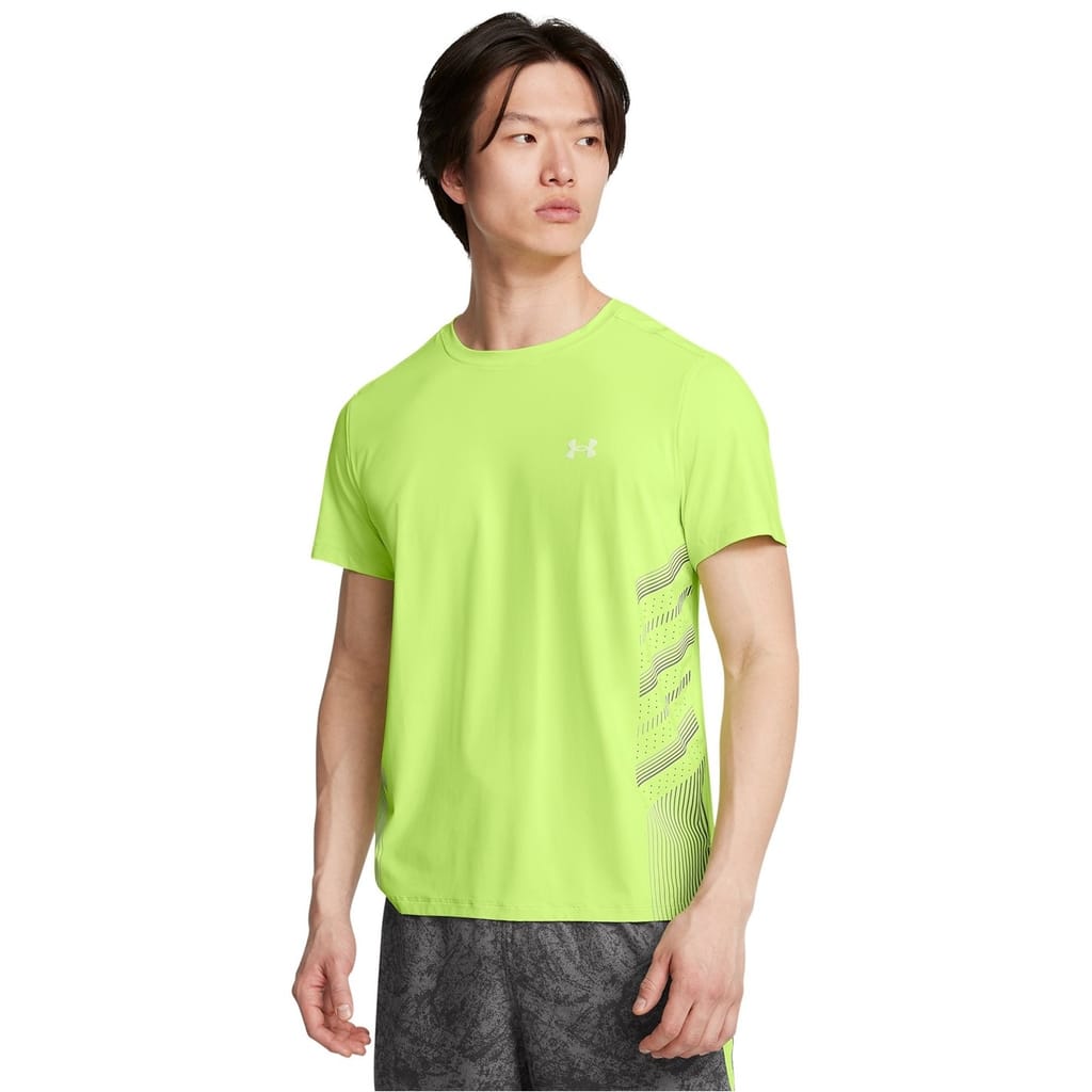 Go the extra mile with your running route wearing this Under Armour Launch Elite Graphic T-Shirt. Crafted from a stretchy blend of polyester this T-Shirt is both luxuriously lightweight and breathable, creating a soft touch that keeps you focused on your fitness, from your cycling route to the gym. Perfect for the warmer temperatures this T-shirt features so-Chill fabric helps disperse body heat, making it feel cool to the touch whilst the laser perforations enhance your comfort with the ventilation.