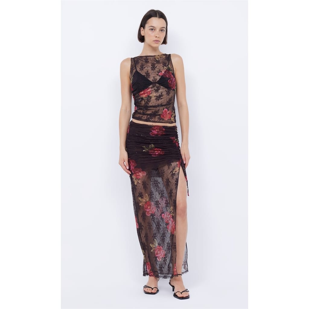 Bec and Bridge's Desert Rose Ruched Maxi Skirt features fluid lines with gathering for a striking shape. The strategic ruching creates texture while maintaining a drape that complements your personal style.