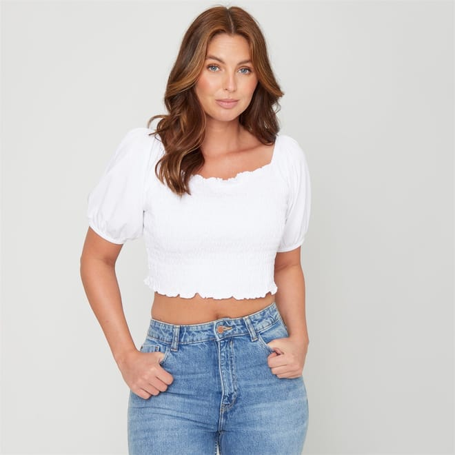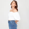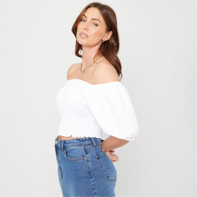 Embrace a chic look with this Be You blouse. Designed with puff sleeves and a cropped length, it features an off-the-shoulder neckline, perfect for a stylish outfit. This solid-colour top offers a regular fit, making it a versatile addition to your wardrobe. -