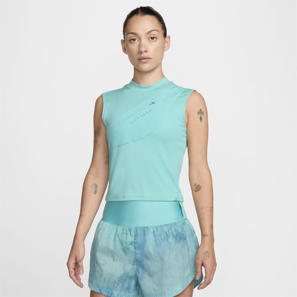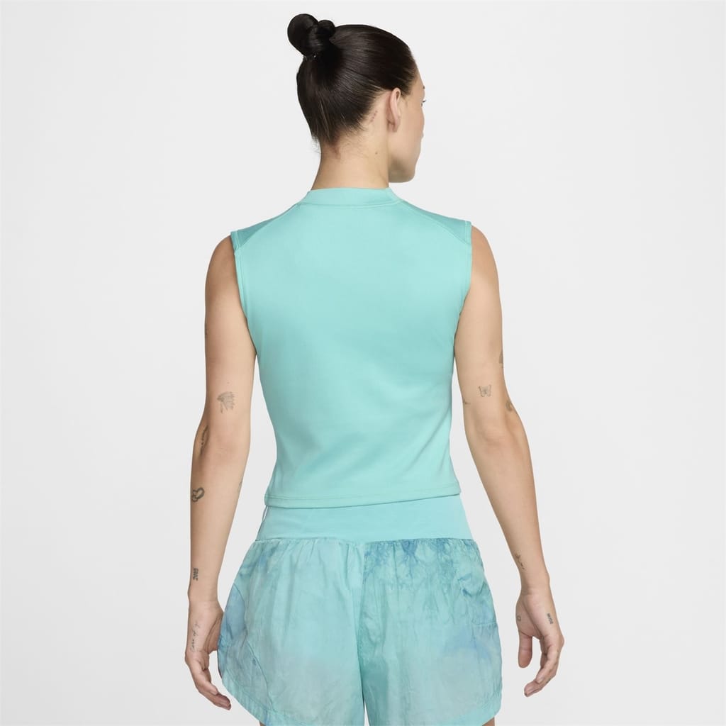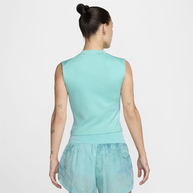 This Nike athletic tank top is designed for running enthusiasts. The sleeveless vest features a mock neck, offering a regular fit that ensures comfort during performance. Crafted with Dri-Fit technology, it is perfect for sporting activities, keeping you dry and focused on your run. -