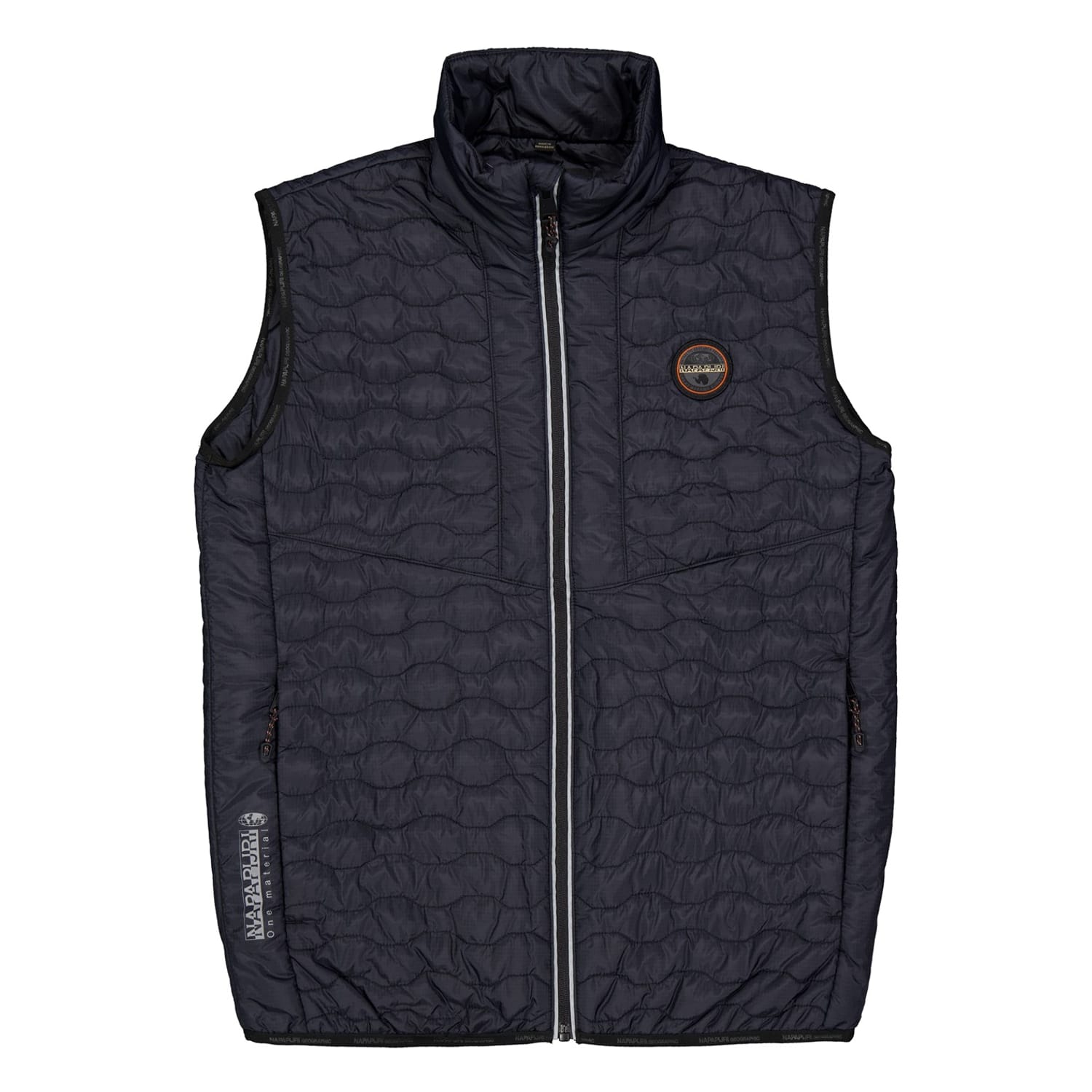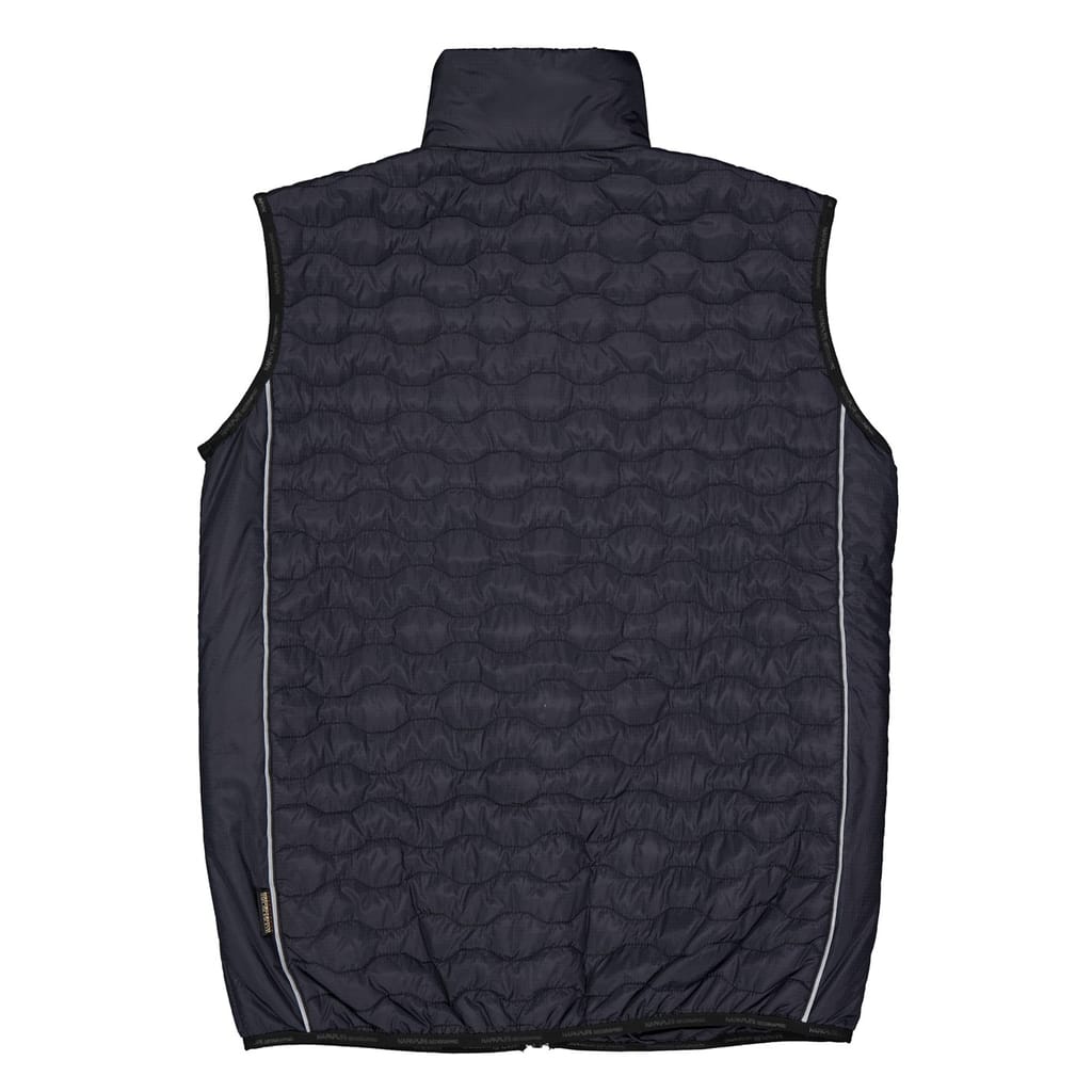 The Napapijri gilet is a lightweight jacket featuring a solid pattern and a regular fit. This sleeveless design includes a zipper closure and showcases the brand's logo, offering a stylish yet functional addition to your wardrobe. -
