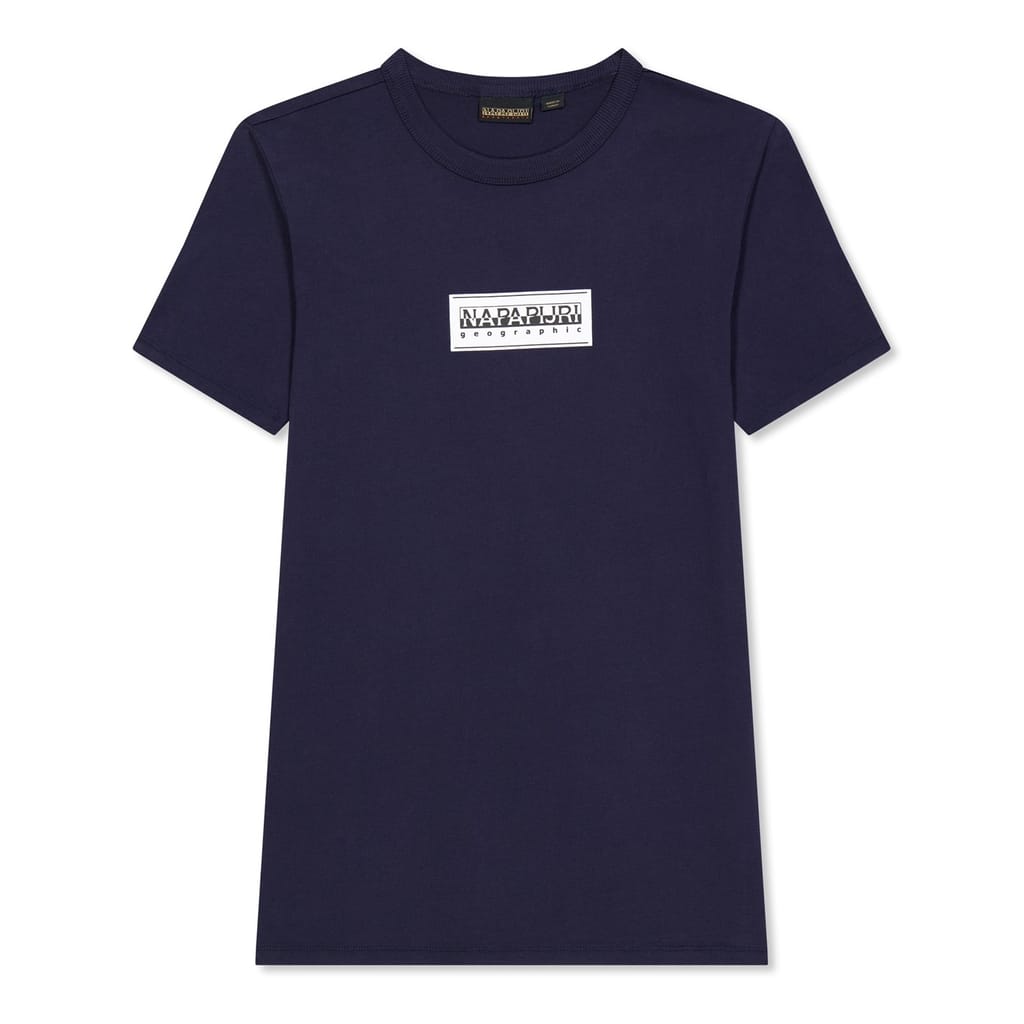 Discover casual style with Napapijri t-shirt, featuring a regular fit and short sleeves. This top boasts a ribbed crew neck and ribbed cuffs, adding texture to its design. Embellished with a logo and a distinct geographic print, it offers a unique touch to your wardrobe essentials. -