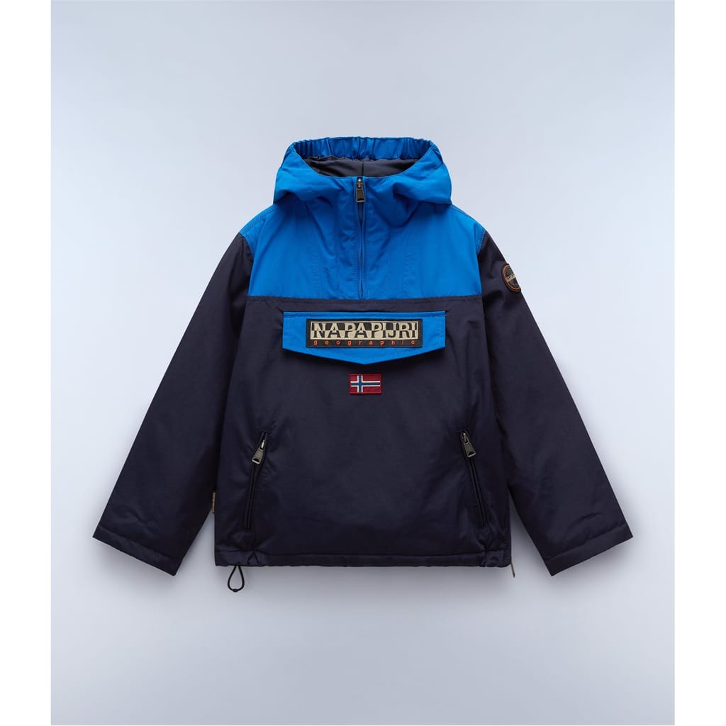 Add a layer of luxury to your little one's look with this Rainforest Pocket Anorak Jacket from Napapijri. As one of their most iconic Anorak's, the Rainforest style, has been keeping intrepid explorers warm and on trend since 1995. Celebrated for its fusion of fashion with functional this Anorak not only features the famous, spacious, kangaroo pocket on the front but this kid's version also features two side zipped pockets for ease of access to their everyday essentials. Whether seeing friends in the city, enjoying a woodland walk or wrapping up during those winter months this coat will keep your kid warm and comfortable.