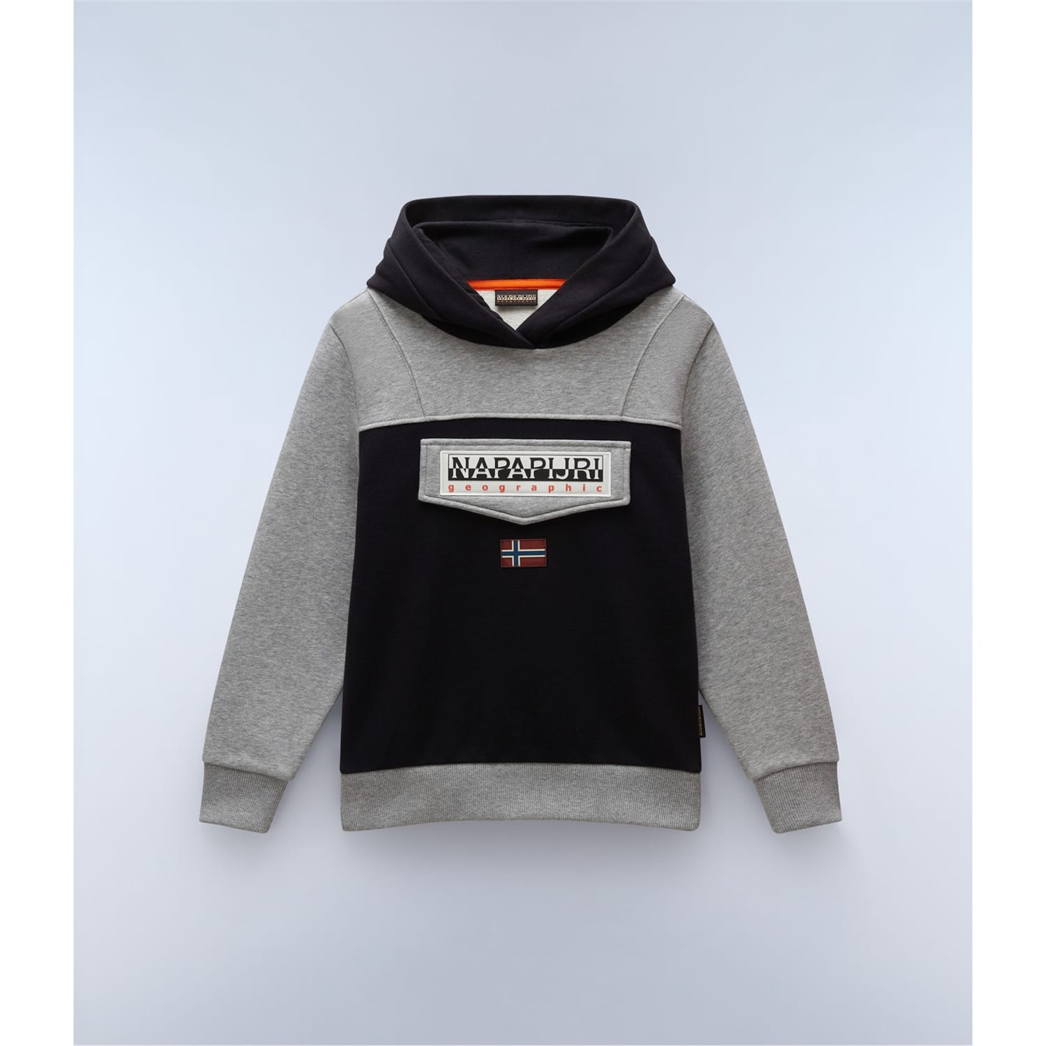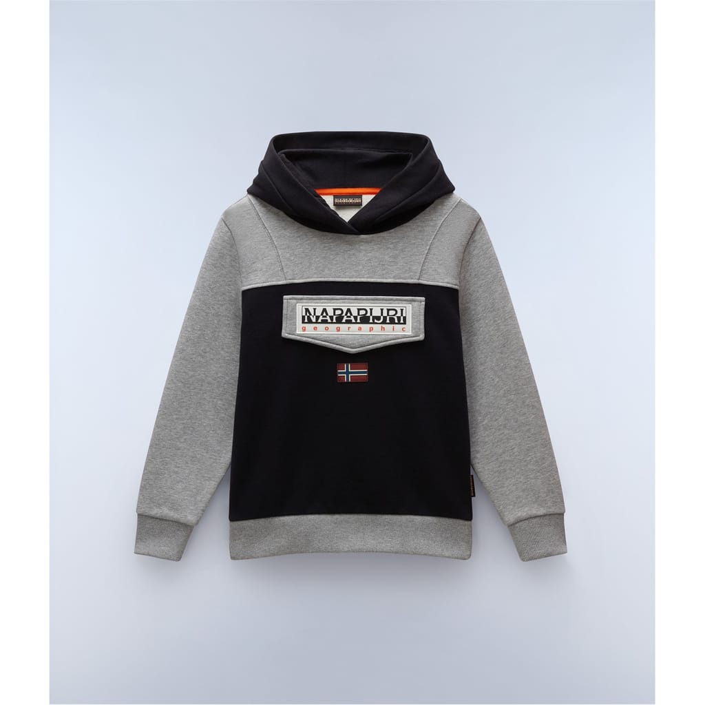 Discover the Napapijri Burgee sweatshirt, a regular fit top with a stylish color block pattern. This hoodie features a hooded neckline, long sleeves, and ribbed cuffs. It is adorned with a logo, a practical pocket, and a patch, combining functionality and style effortlessly. -