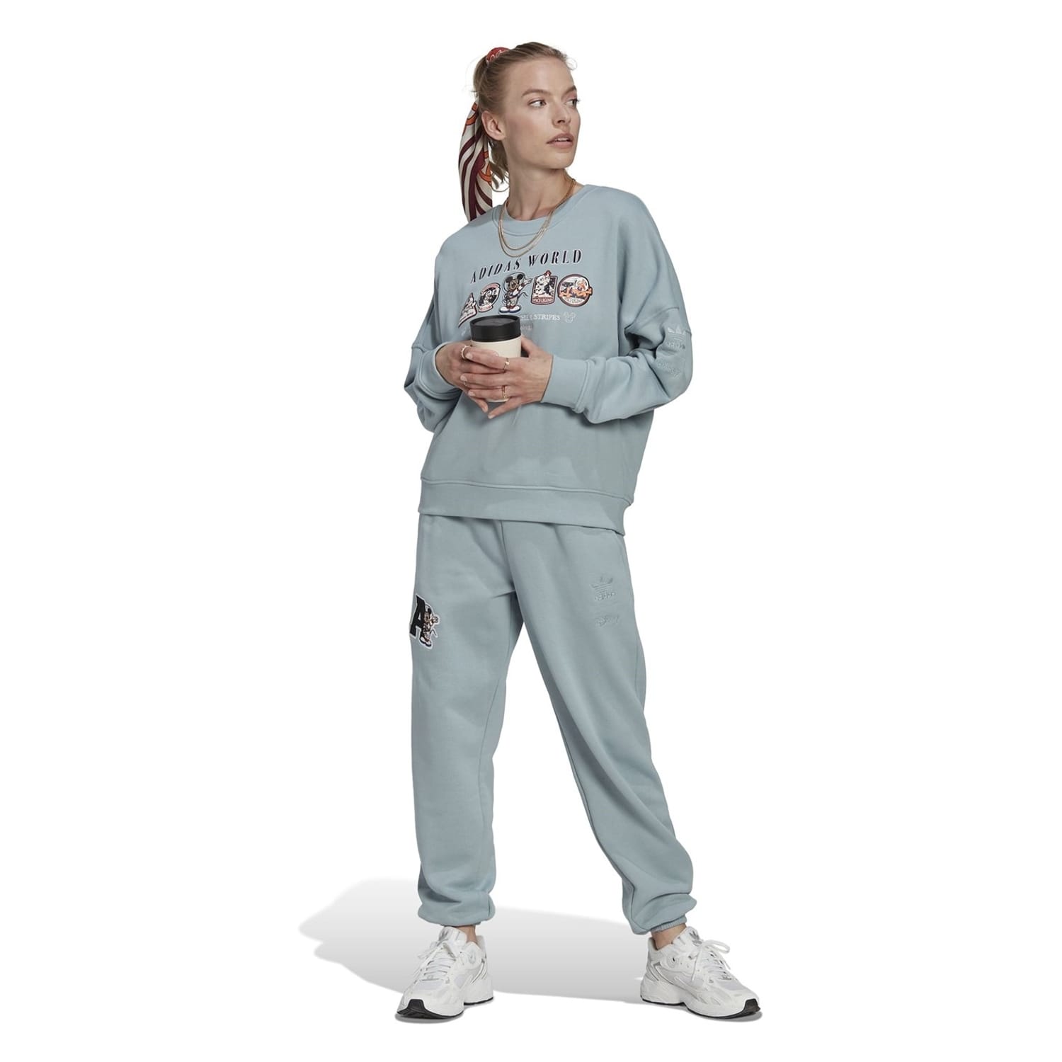 These adidas Originals joggers feature a playful Mickey Mouse graphic, combining sporty style with a touch of fun. Crafted from solid fabric, they include a drawstring closure for a secure fit. Embellished with the iconic logo, pockets, and embroidered details, these joggers are a stylish and practical addition to any wardrobe. -