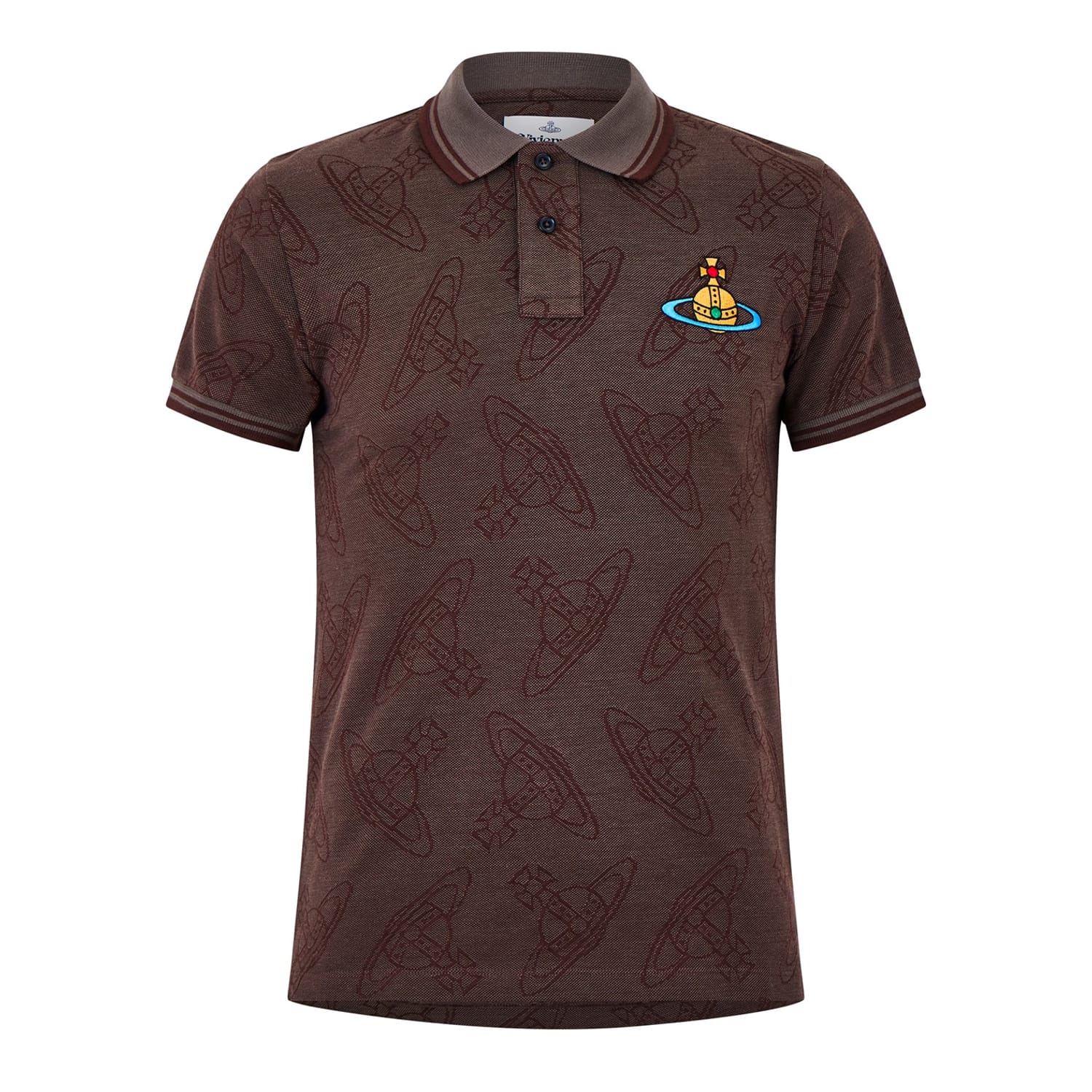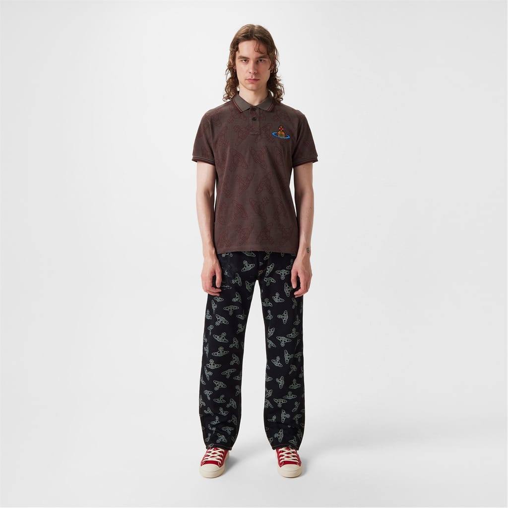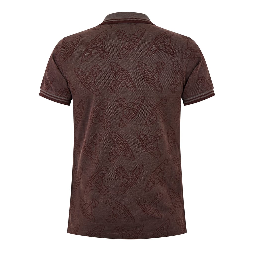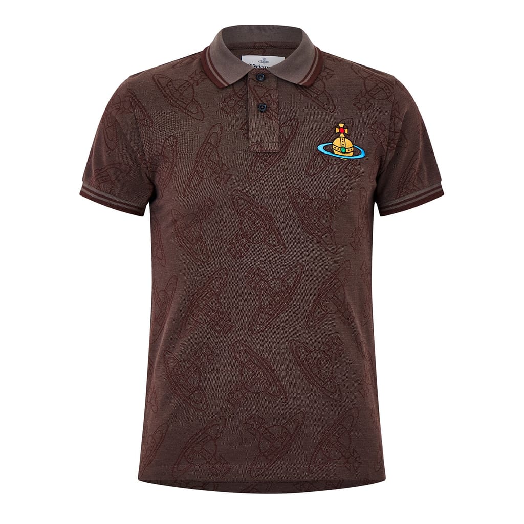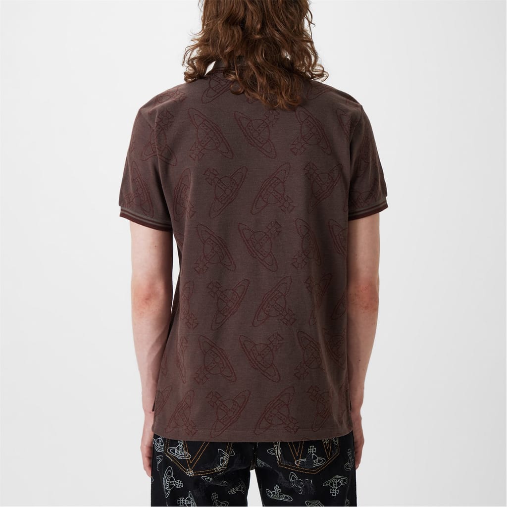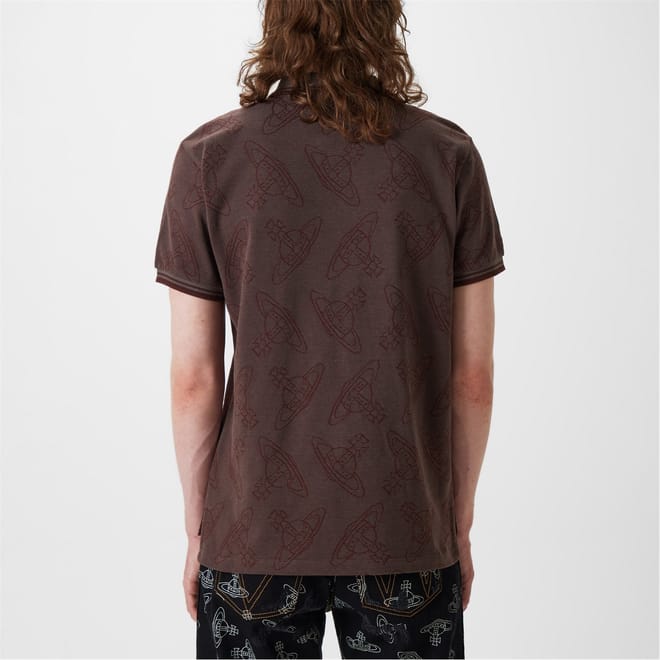 Discover the Vivienne Westwood polo shirt, a classic piece from the semi-formal collection. This top features a polo collar and short sleeves, crafted in a regular fit for comfort. The button closure and ribbed cuffs add to its timeless appeal. Embroidered with an all-over logo pattern, this shirt is a sophisticated choice for any occasion. -