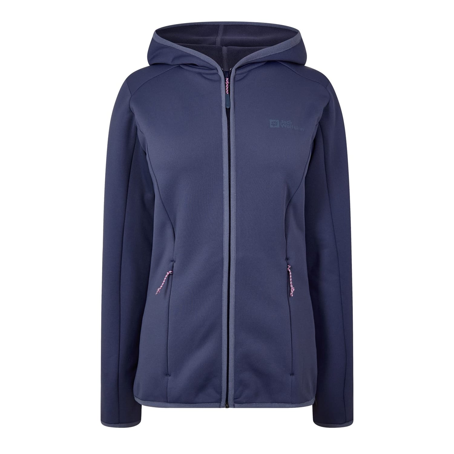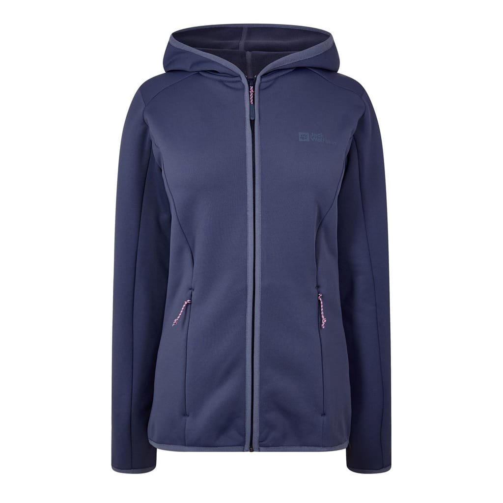 Discover the Jack Wolfskin fleece jacket, perfect for outdoor adventures. This jacket features a hooded neckline and a convenient front zipper closure, providing practicality and comfort. Its raglan sleeve design and ribbed cuffs ensure a regular fit. With a solid pattern and subtle logo embellishment, this jacket combines style with functionality. -
