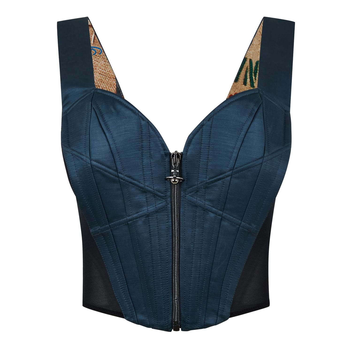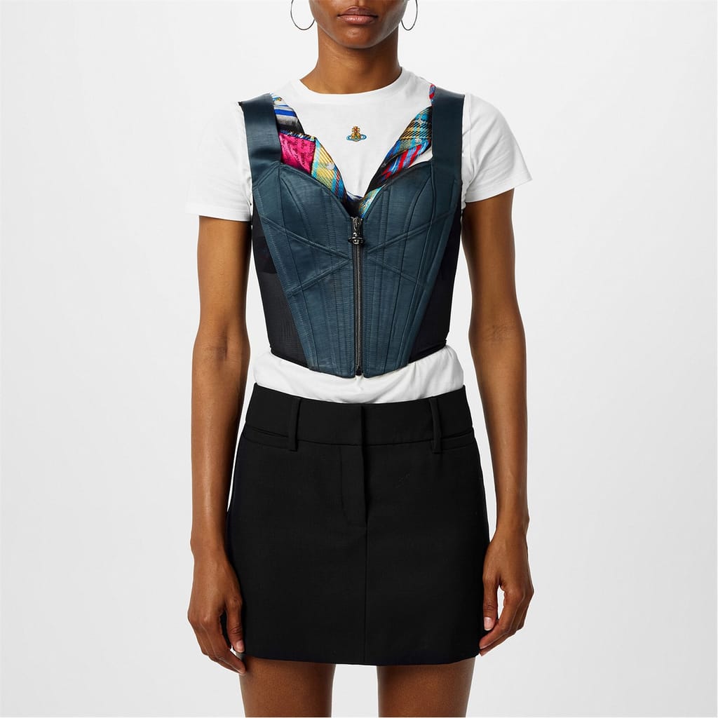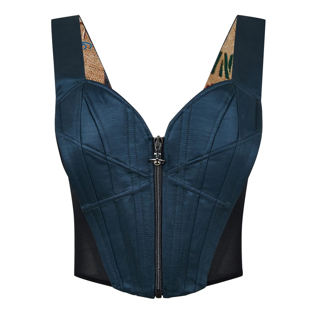 Vivienne Westwood, the epitome of luxury and high-end allure, presents the Classic Corset. Adorned with a structured front and rear creating a flattering silhouette, while the signature orb zip detailing provides instant brand recognition. From sipping cocktails with the girls to summer soirées, this structured corset is the perfect piece.