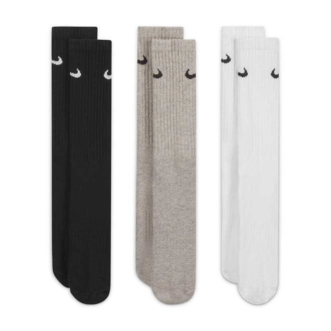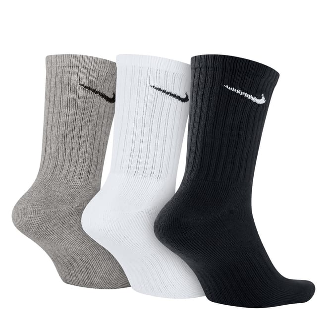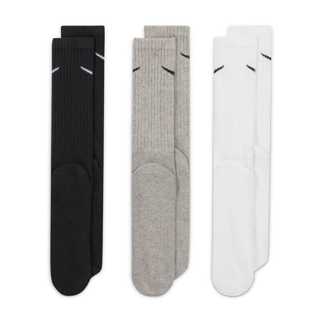 Elevate your essentials with these men's Everyday 3 Pack Cottoned Crew Socks from Nike. Made from a soft blend of cotton these crew socks have been engineered with Dri-Fit technology which wicks sweat away from the skin and dries quickly for optimal comfort. Made for the everyday these socks feature a comfortable elasticated upper and arch support offers a secure fit. These cushioned socks include reinforced detailing to the toe and heel for enhanced durability and are finished with a contrasting iconic Nike Swoosh to the upper.