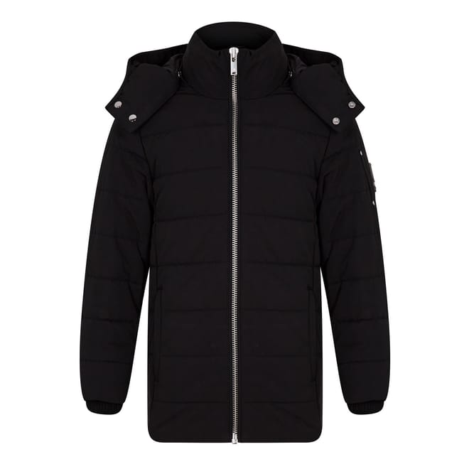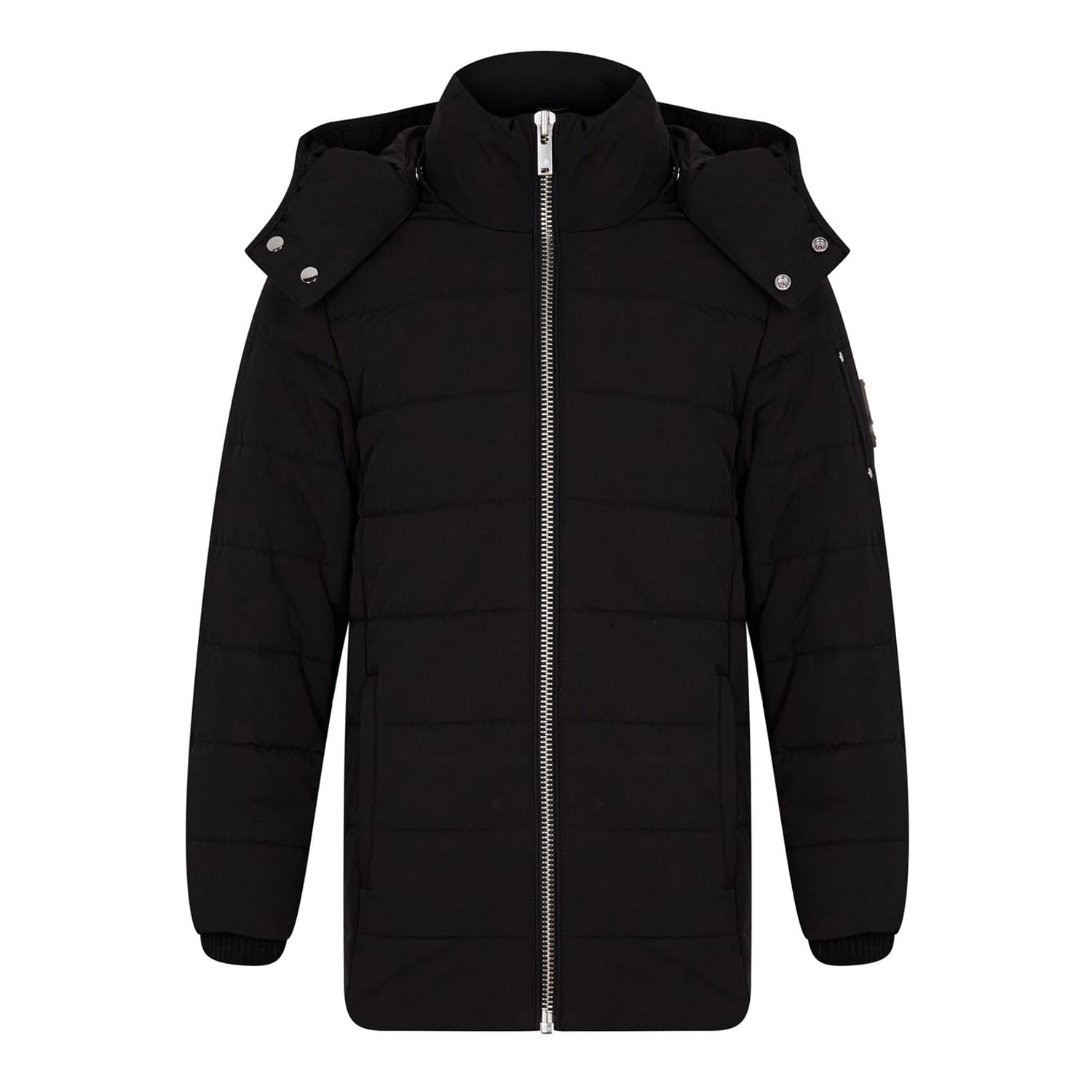 The Moose Knuckles puffer jacket is designed for those seeking warmth and style. Featuring a hooded neckline and a zipper closure, this heavyweight jacket ensures comfort in colder climates. The ribbed cuffs and straight hem provide a snug fit, while the solid pattern and logo embellishment add a touch of sophistication. Ideal for regular fit preferences. -