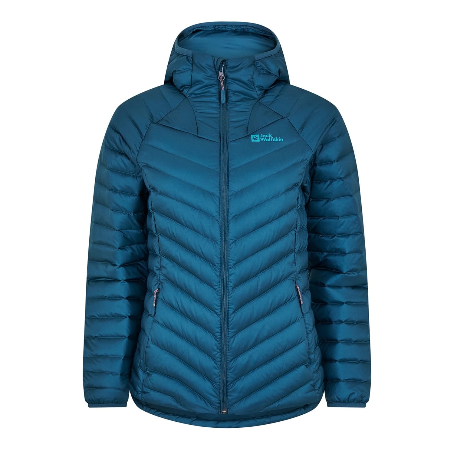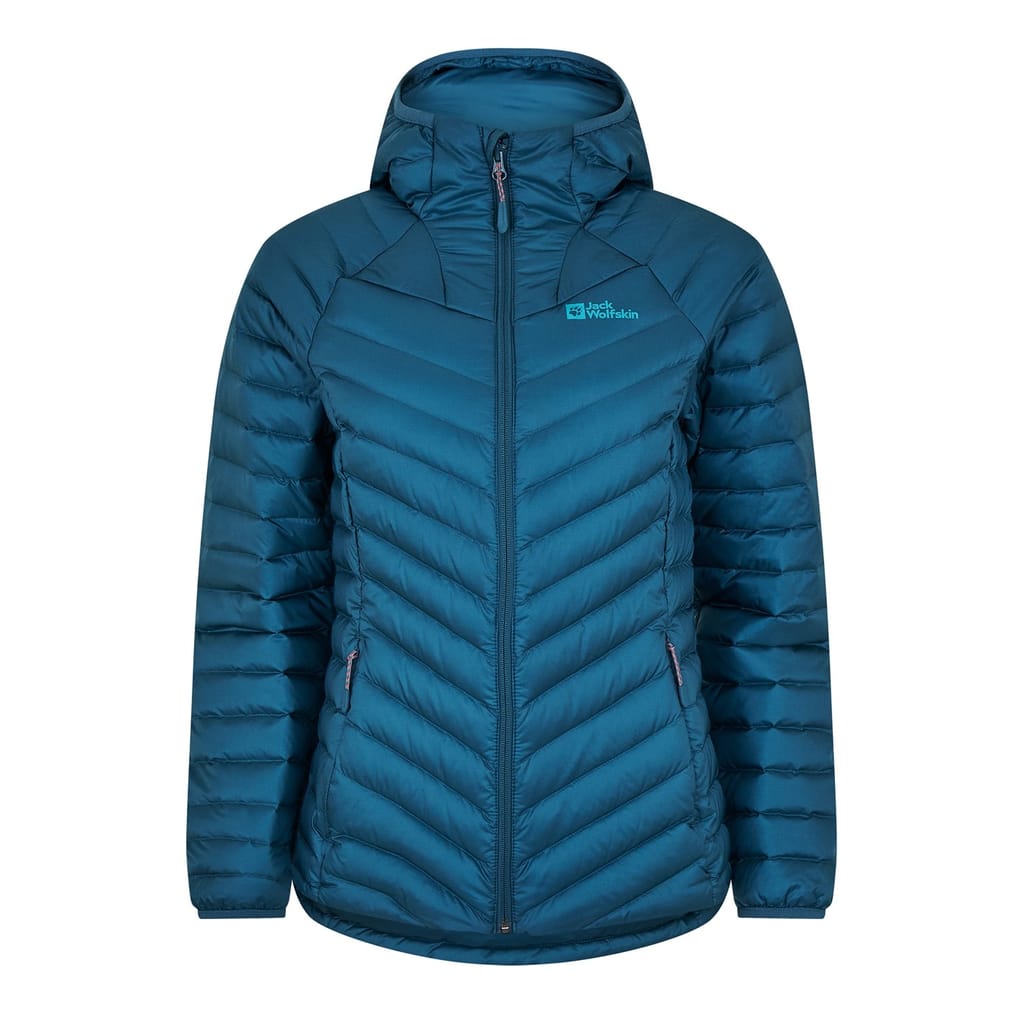 The Jack Wolfskin JW Passamani Hooded Down Jacket delivers reliable warmth with a lightweight, insulated design that complements everyday winter wear.