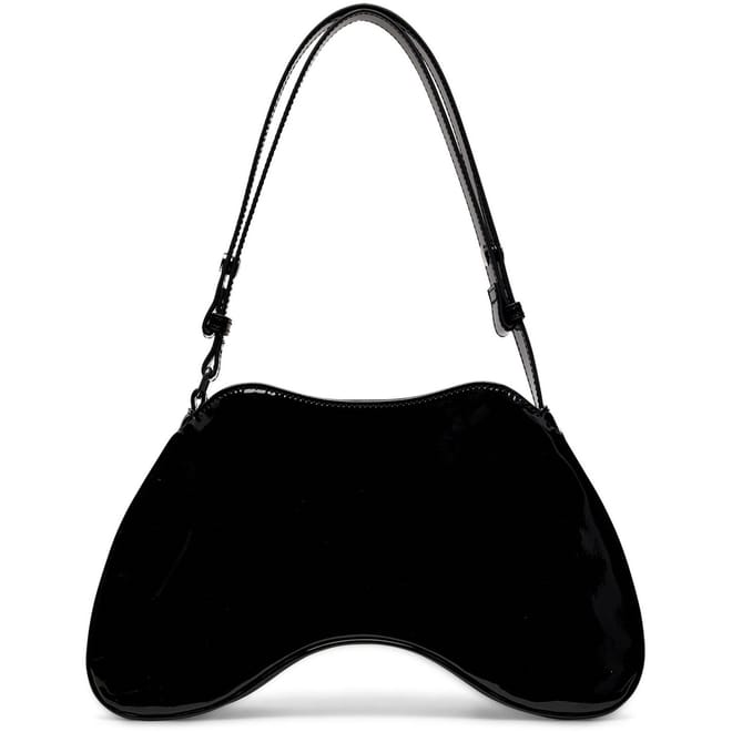 Enhance your accessory collection with the Play Shoulder Bag by Diesel Jeans, the epitome of sophisticated style. Crafted with meticulous attention to detail from 100% polyurethane, this bag boasts a smooth and glossy finish, exuding luxury at every glance. Inspired by the sleek shape of gaming controllers, its asymmetric design stands out from the crowd, making a bold statement. Effortlessly combining fashion and functionality, the main compartment features a secure zip fastening and includes a convenient zipped inner pocket, providing ample space for all your essentials while keeping them organised. The adjustable shoulder strap creates a customisable fit to suit your personal style.