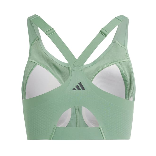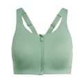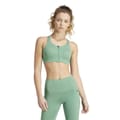 This adidas top is designed for high-impact sporting activities. It features a snug fit with a scoop neckline and a solid pattern. The sleeveless design is complemented by a front zipper closure and a front zipper pocket. The top is adorned with a logo, adding a touch of brand identity. -