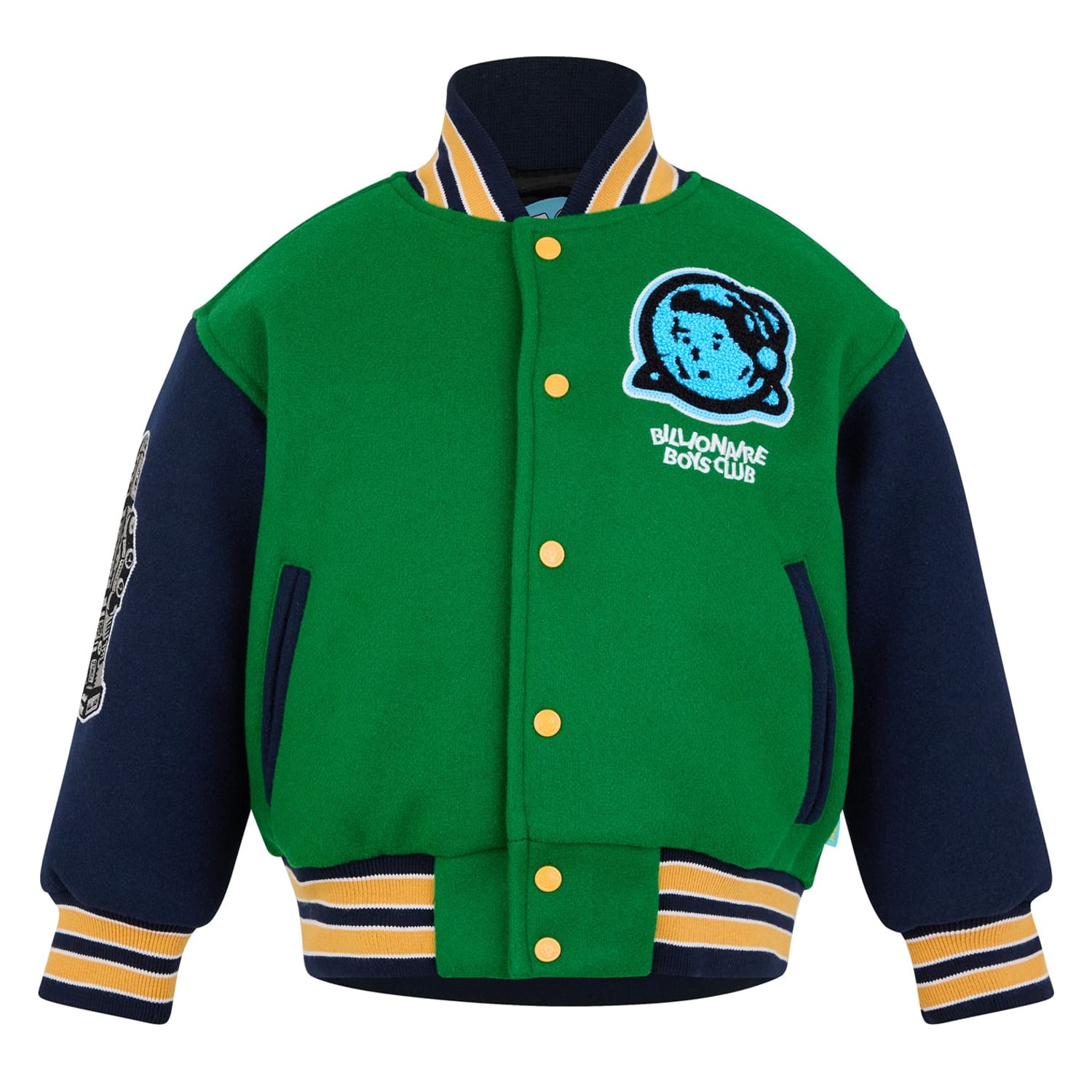 - Designed in a combination of colours with yellow striped trims, this jacket is a true fashion masterpiece. The embroidered Billionaire Boys Club logo at the front, the chenille appliqué logo patch at the chest and back, and the embroidered robot at the right sleeve add unique touches of sophistication, reflecting the brand's iconic design aesthetic. Elevate your young -