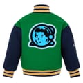 Let your young one embrace iconic style with the Billionaire Boys Club Astro Varsity Jacket. Crafted in a classic varsity jacket style, made from 100% polyester, this outerwear piece offers a regular fit that effortlessly combines sophistication and comfort. The branded snap button fastening and stand collar exude an air of refined elegance, ensuring they make a statement wherever they go. With its long sleeves and ribbed trims, this bomber provides the perfect balance of style and functionality, allowing your youngster to stay warm. The side slit pockets ensure space for little essentials while on the go.