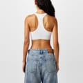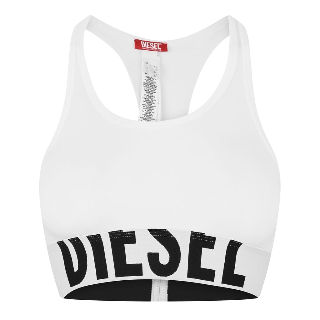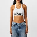 Built with a sporty racerback silhouette, this soft-cut bra is made from stretch cotton jersey. Complete with a wide elasticated band, flaunting a maxi cut-off Diesel logo.