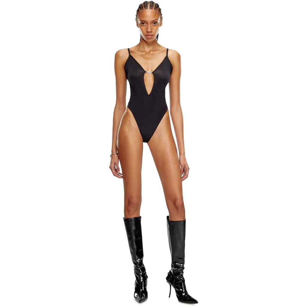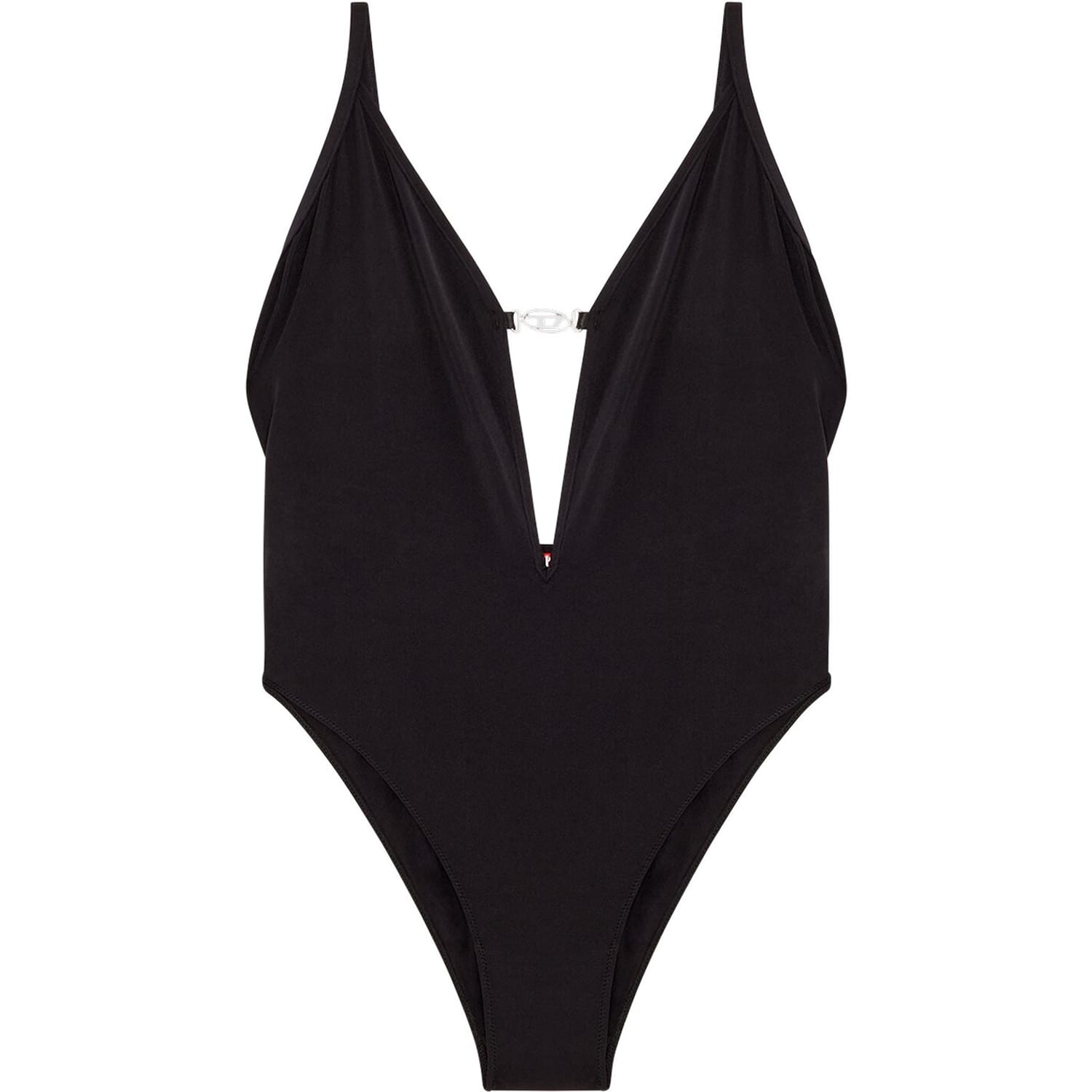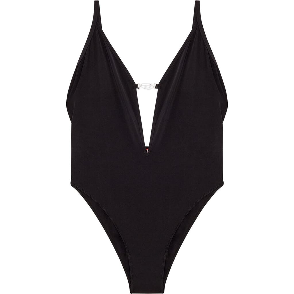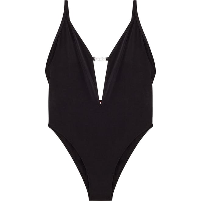 Discover Diesel's cropped top, featuring a V-neck design and a slim fit for a sleek silhouette. This solid pattern piece is enhanced with an O-ring embellishment, adding a unique touch to your wardrobe. -