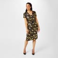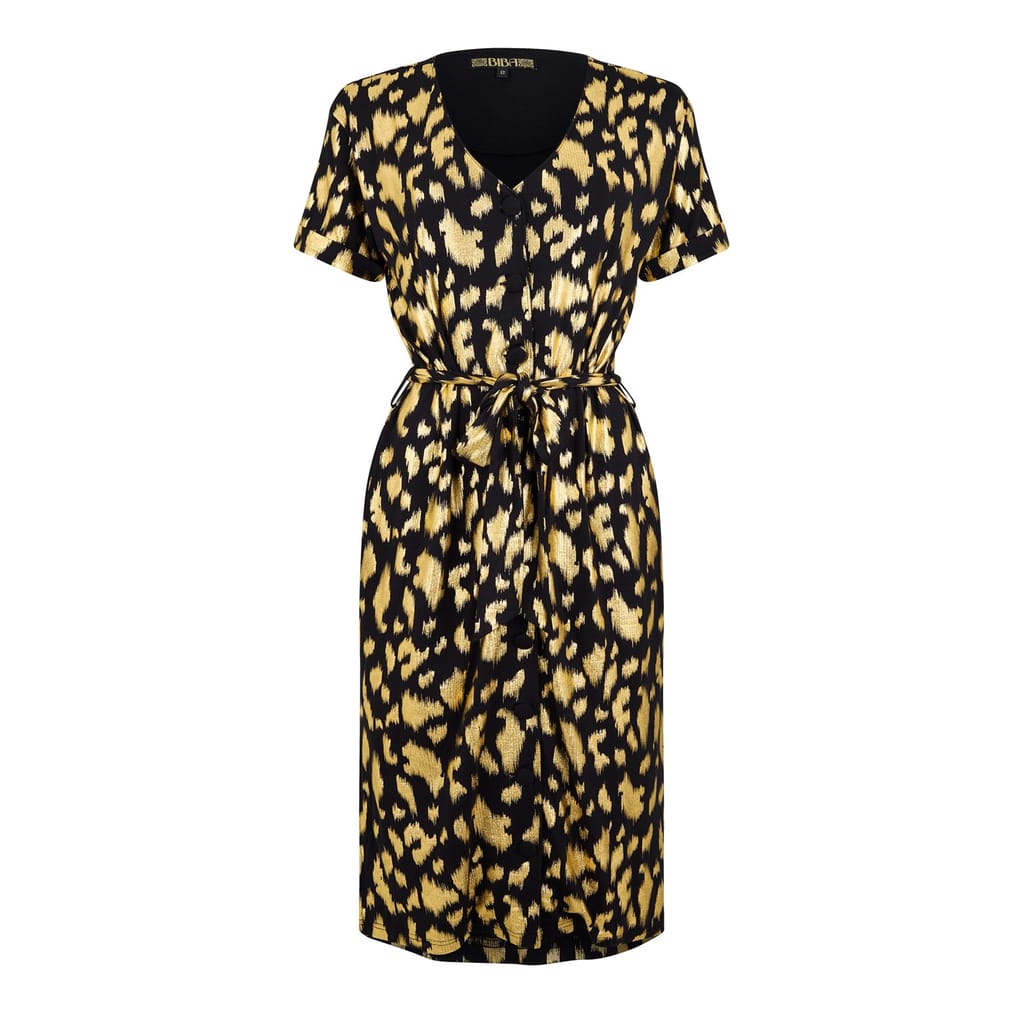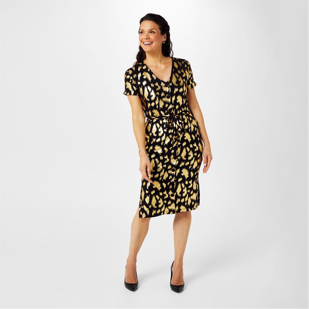 Introducing the Biba Foil Printed Dress, a statement piece that effortlessly combines style with a touch of glamour. Crafted with a flattering v-neckline and adorned with an exclusive Biba foil print, this dress is sure to turn heads wherever you go. Made from comfortable jersey fabric and featuring short sleeves, it offers both style and comfort for all-day wear. The tie detail waist adds definition to your silhouette, while pockets and a button-through design add practicality and charm