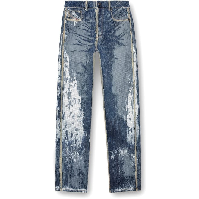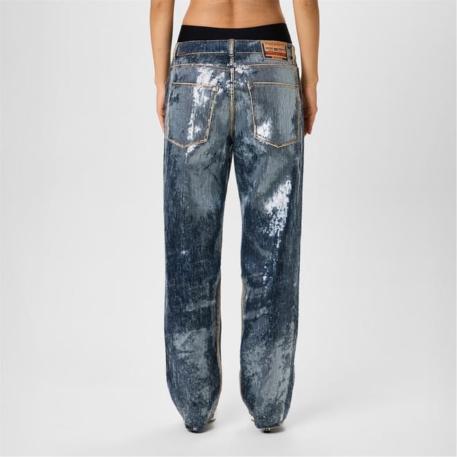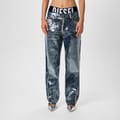 Discover Diesel's wide-leg jeans, featuring a relaxed fit and an acid wash pattern. These jeans come with a zip fly and button closure, offering both style and comfort. The design is completed with a subtle logo embellishment, adding a touch of brand identity to your wardrobe. -