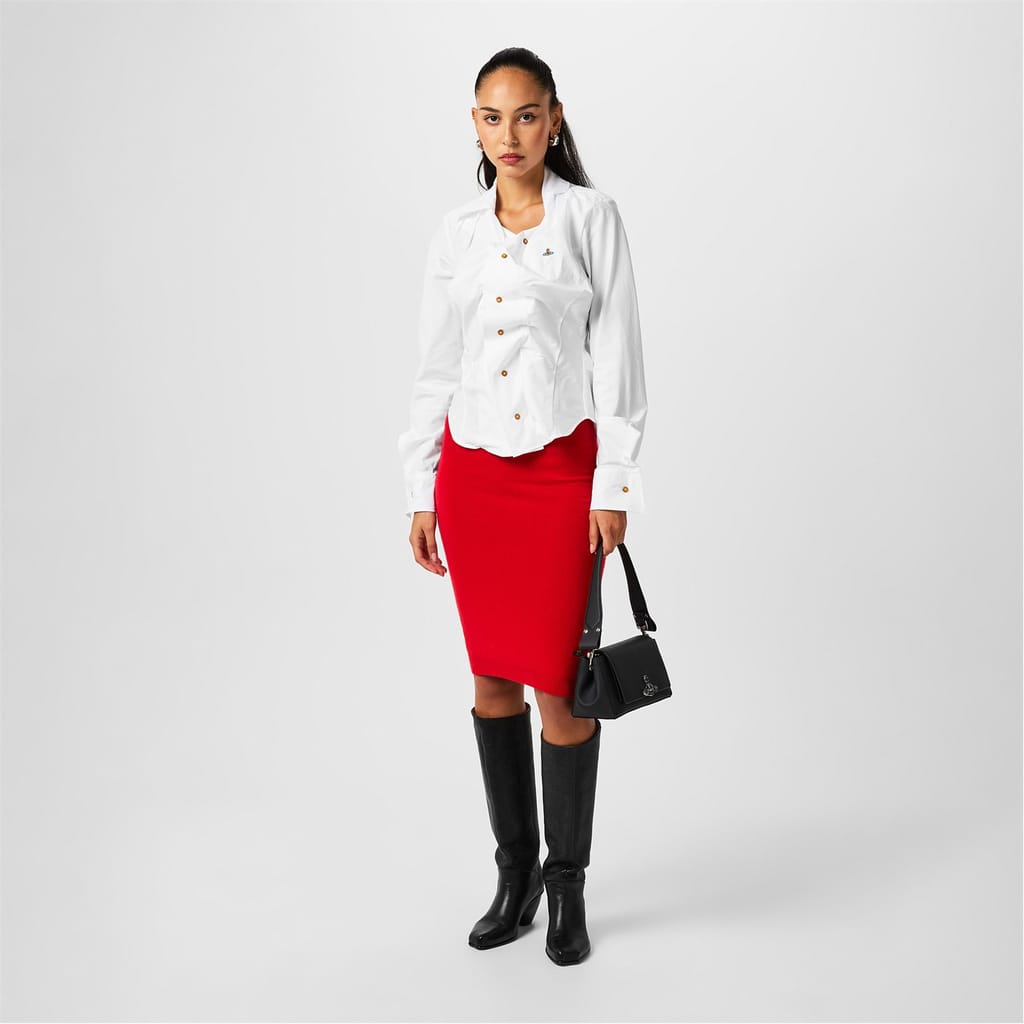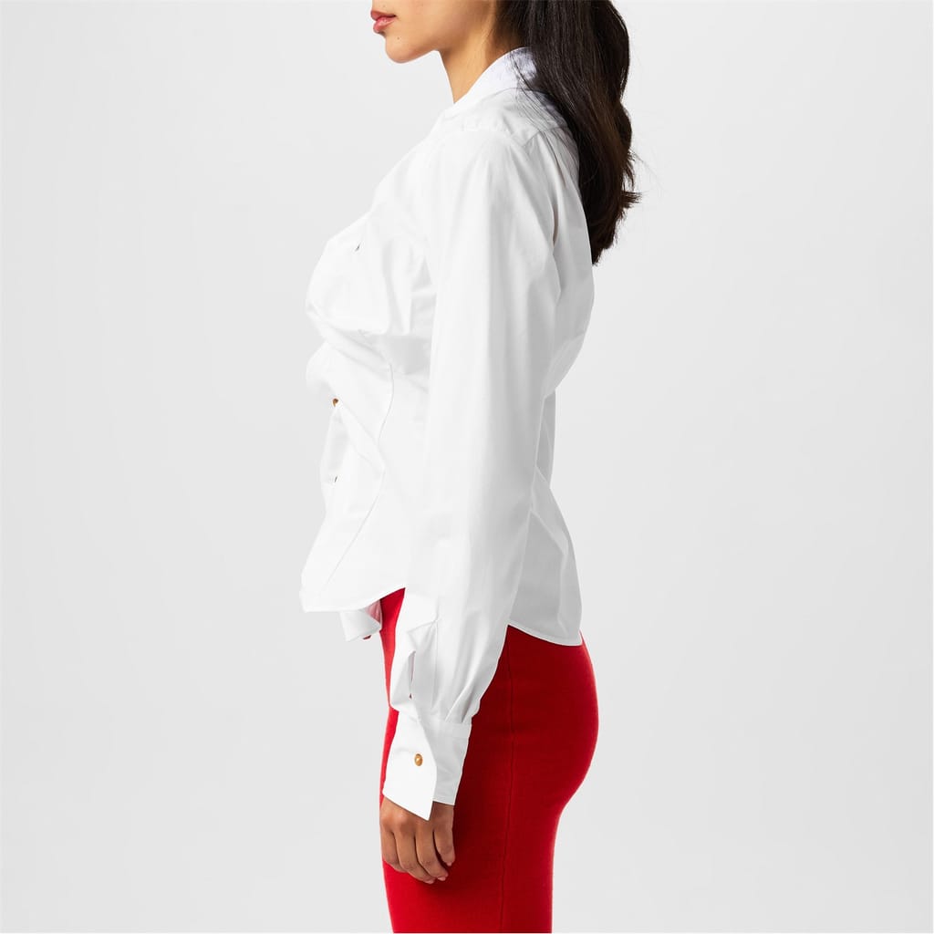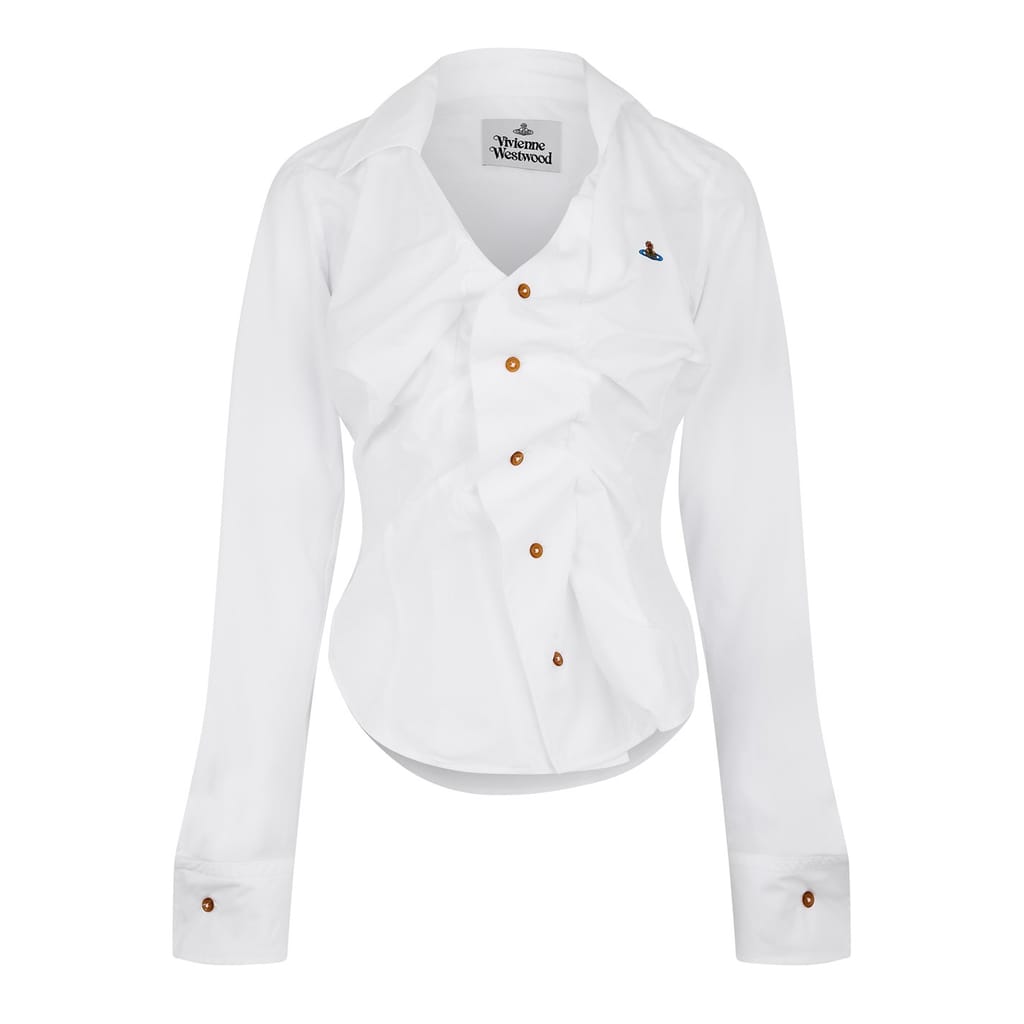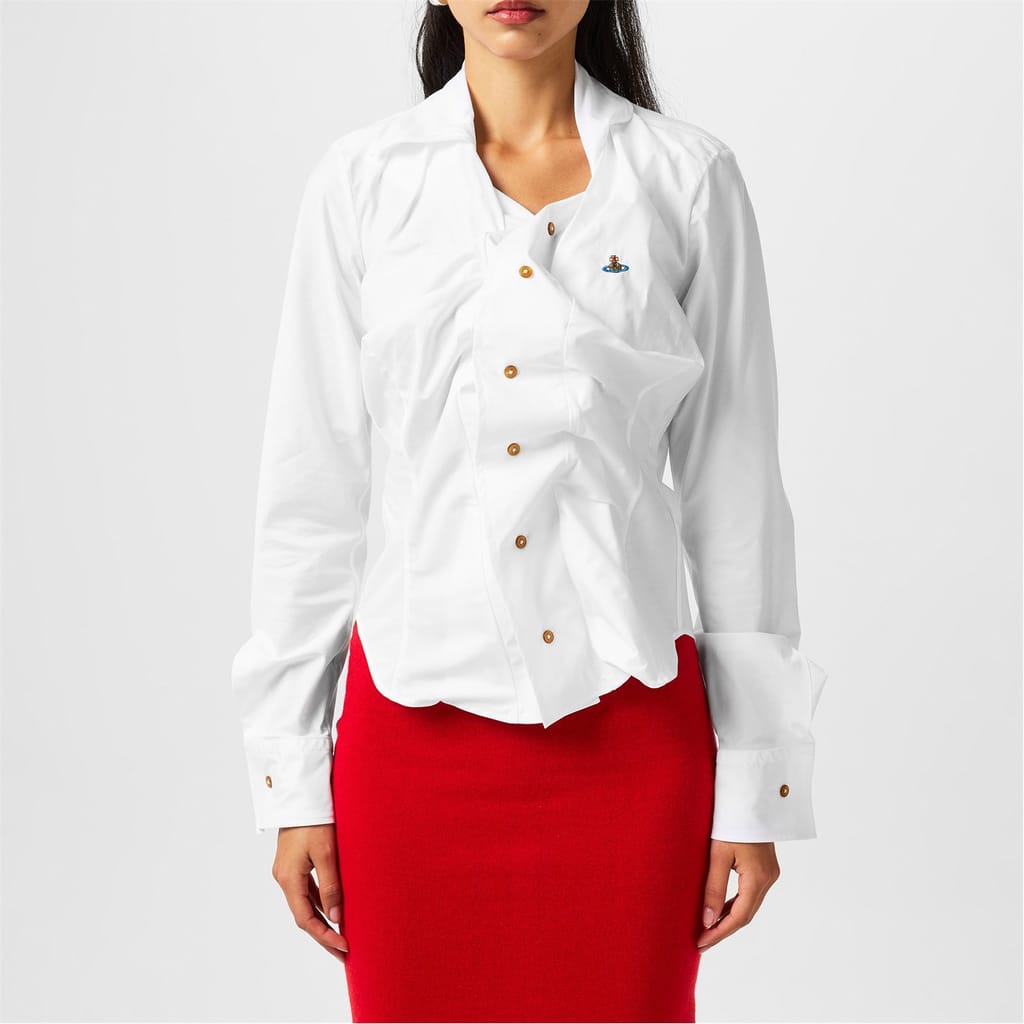 Adding a literal twist to the classic button-down shirt, the Vivienne Westwood Drunken Shirt is the perfect standout staple for every trendsetting wardrobe. Made from pure cotton for a crisp feel and structure, this women's shirt is sure to make a statement as you head into the office, meet friends for a drink, or attend a stylish evening event.