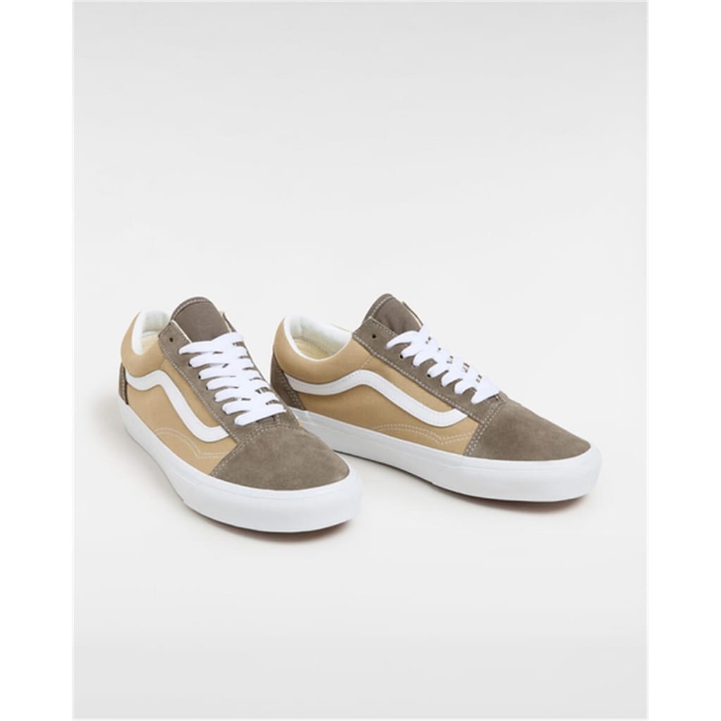 Add a nostalgic nod to your contemporary ensemble with these Old Skool canvas low tops from Vans. Crafted from robust suede and resilient canvas uppers, the Old Skool shoes are both breathable and soft, creating a comfortable appeal that elevates your ensemble with a timeless edge. The signature rubber waffle outsoles not only add a textural contrast but provide superior traction, making them suited for a myriad of occasions—from a casual day out to a spontaneous skateboarding adventure.With a reliable, lace up fastening, round toe and supportive padded collars these shoes were made with your comfort in mind. Launched in 1977 as the Vans #36, these iconic shoes introduced the world to what was a spontaneous doodle by founder Paul Van Doren—now the celebrated Vans Sidestripe, a symbol renowned across the globe as the emblem of the Vans brand. -