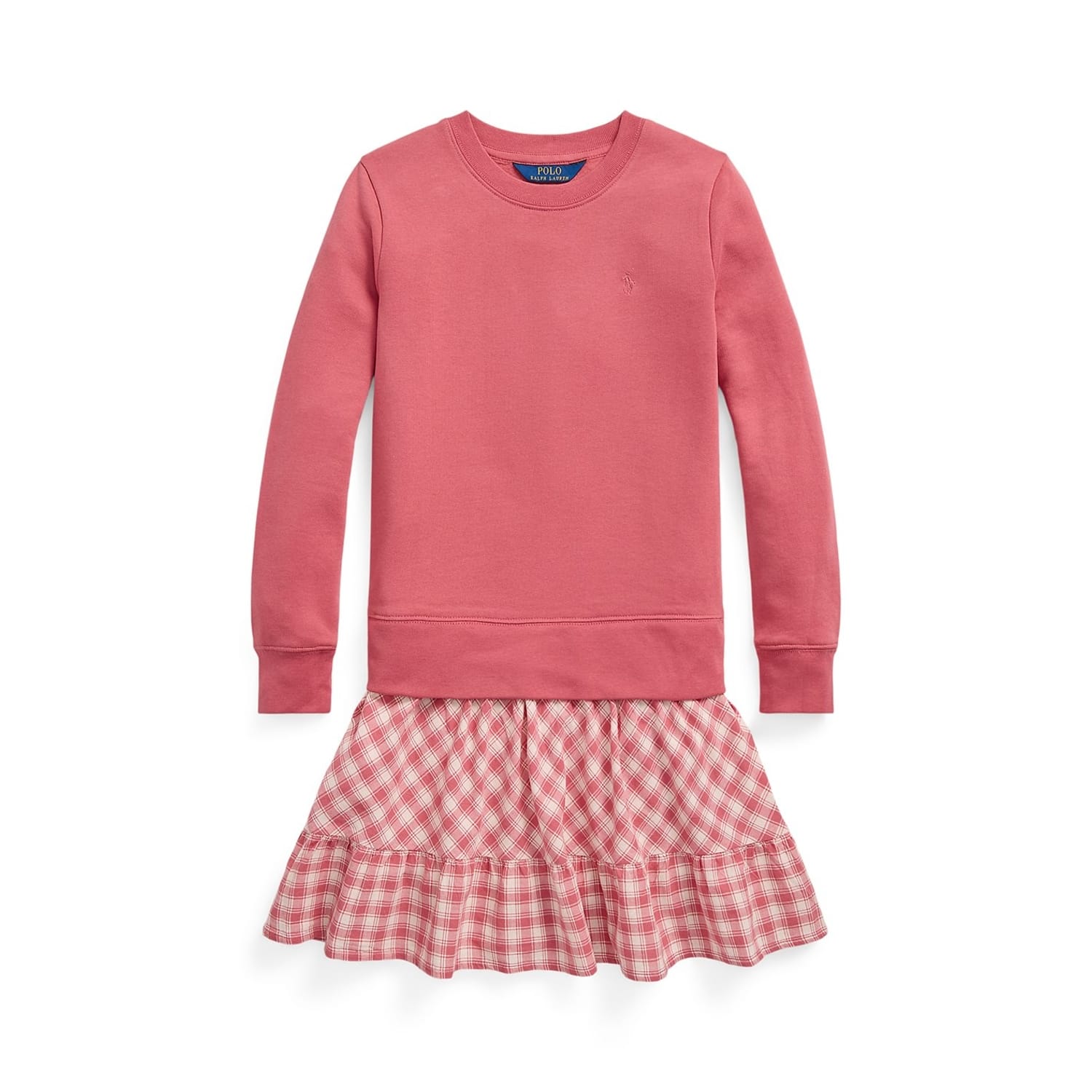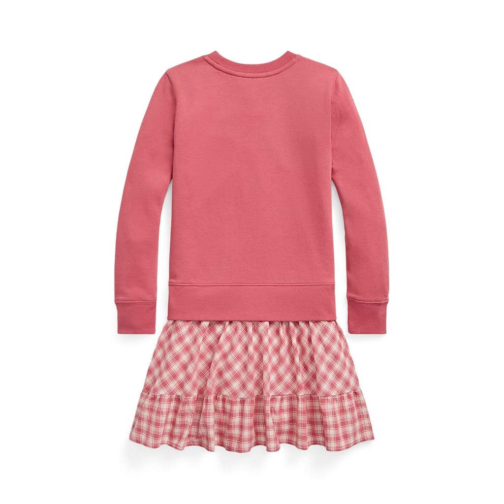 This Polo Ralph Lauren knee-length sweatshirt dress features a classic crew neck and a plaid pattern. Designed with a regular fit, it showcases the brand's logo, adding a touch of distinction to the piece. Perfect for those seeking a blend of comfort and style. -