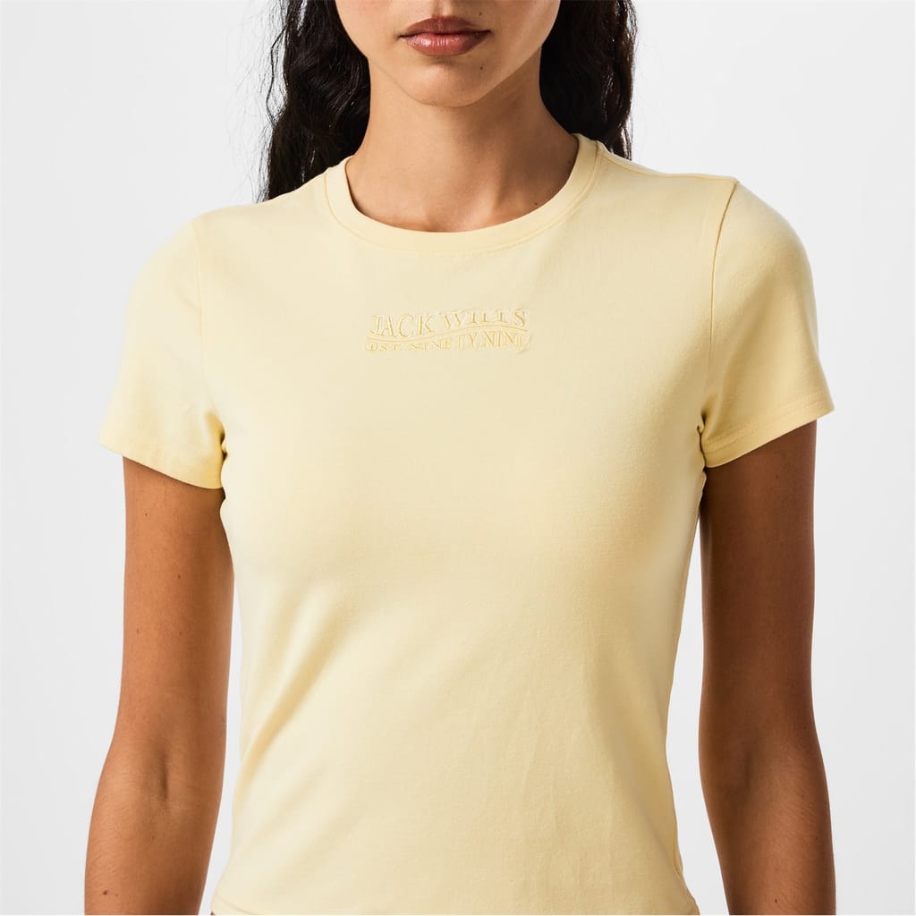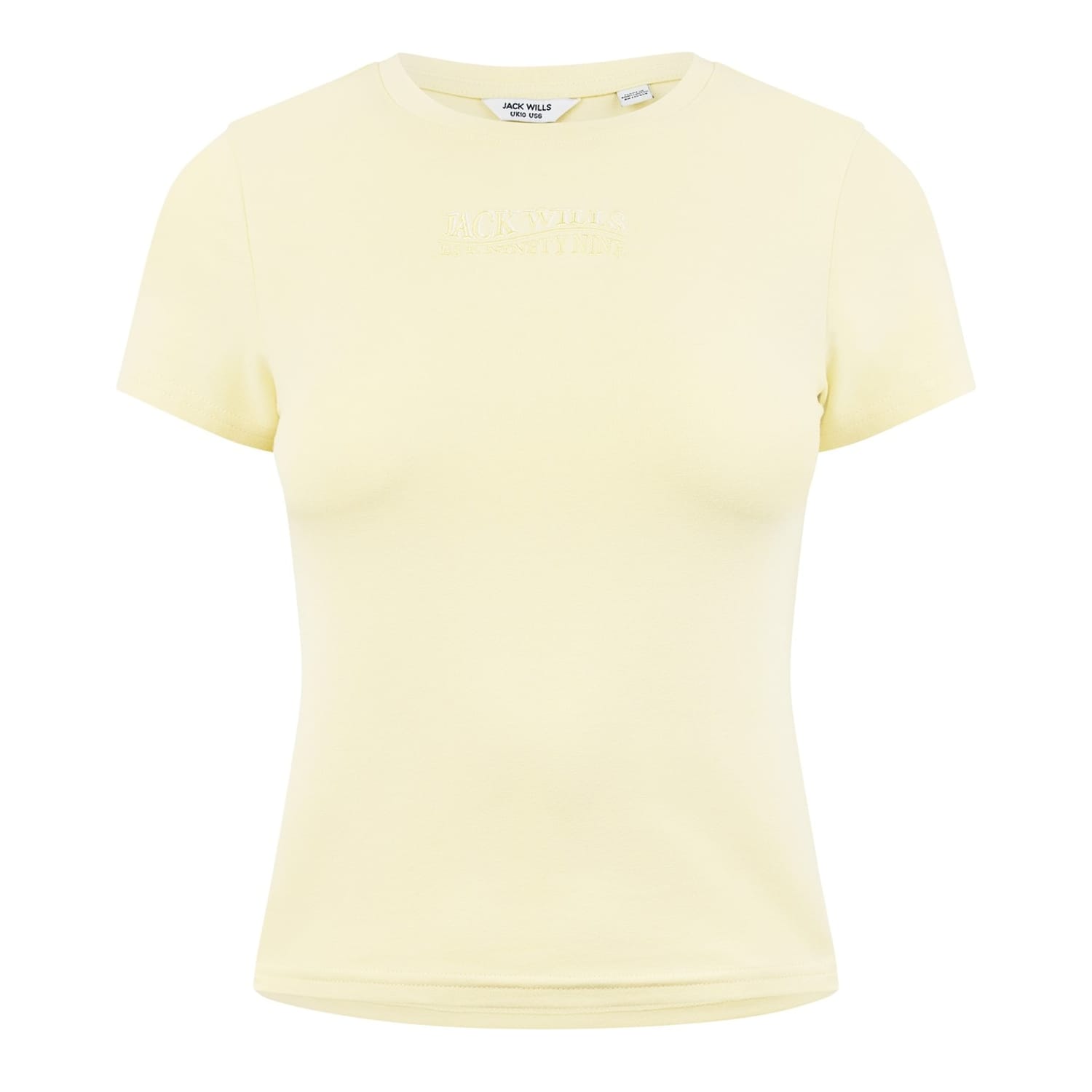 Crafted by Jack Wills, this baby t-shirt from the casual collection showcases a slim fit with a crew neck and short sleeves. The cropped design features a stylish graphic print with embroidered embellishments, adding an adorable touch to your little one's wardrobe. -