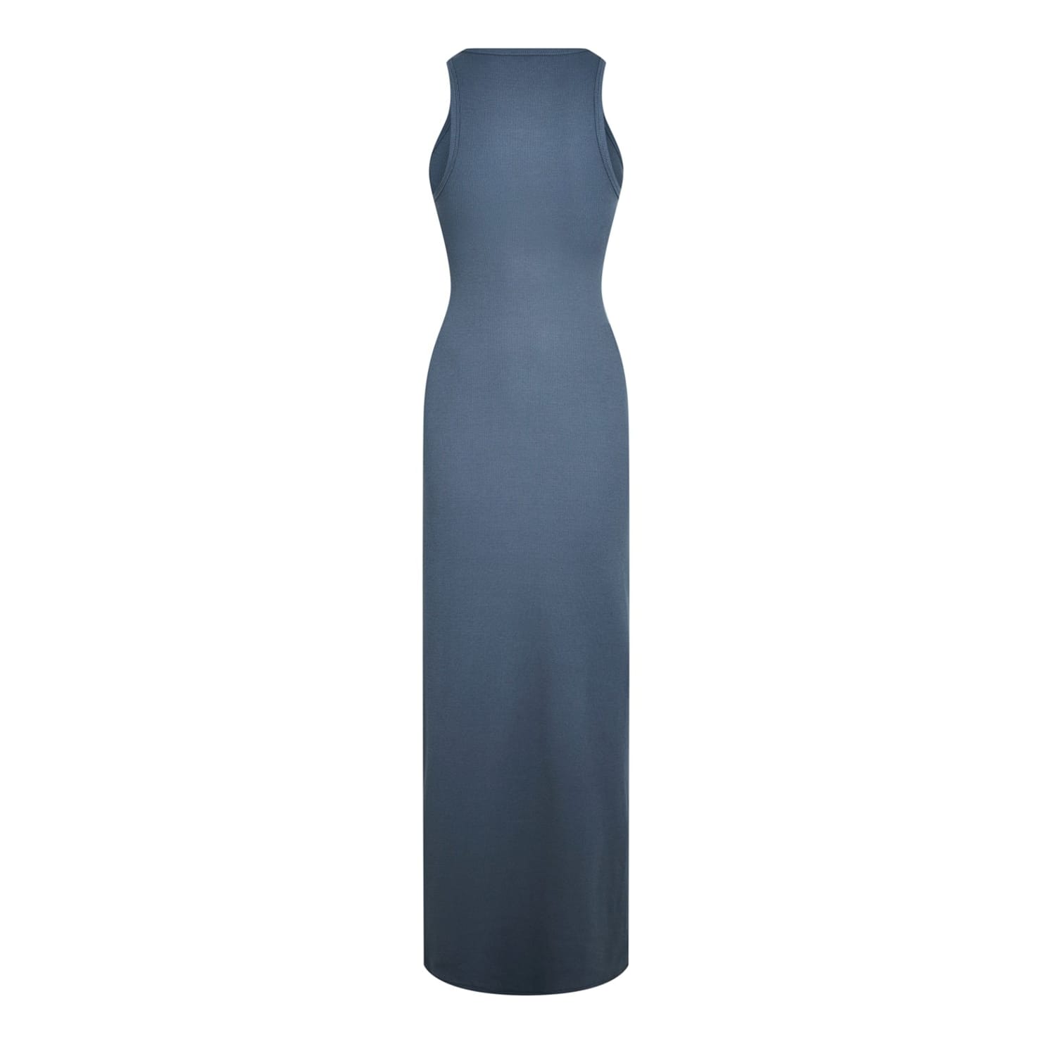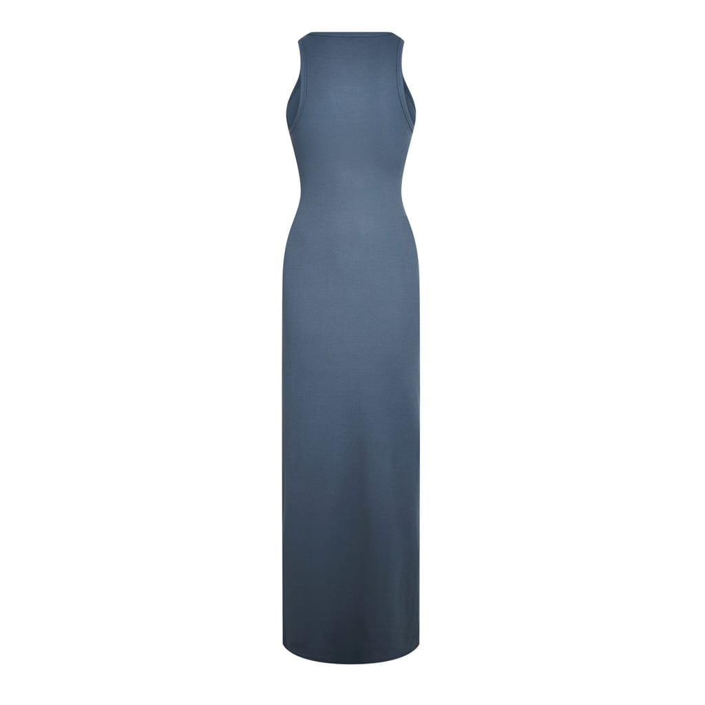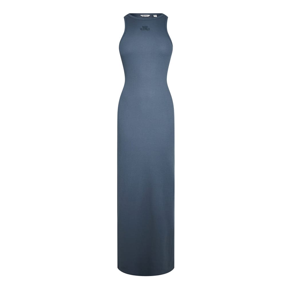 This Jack Wills maxi slip dress features a crew neck and a slim fit, offering a sleek silhouette. The ribbed pattern adds texture, while the logo embellishment provides a subtle brand touch. Ideal for those seeking a stylish and comfortable option for various occasions. -