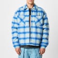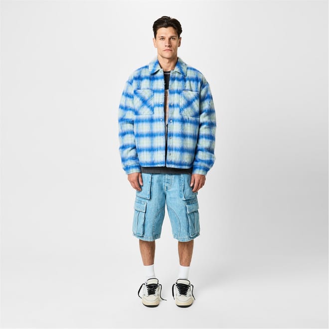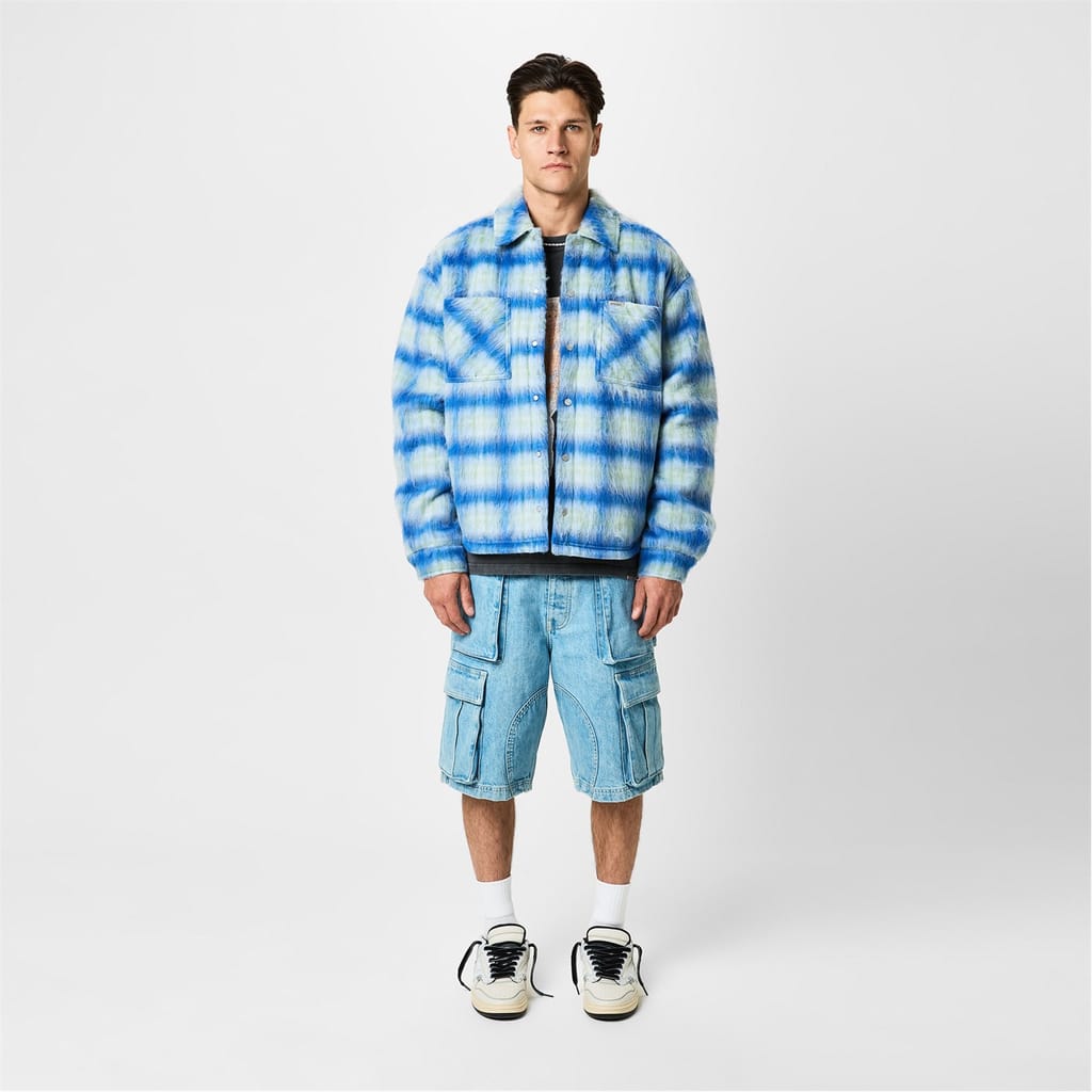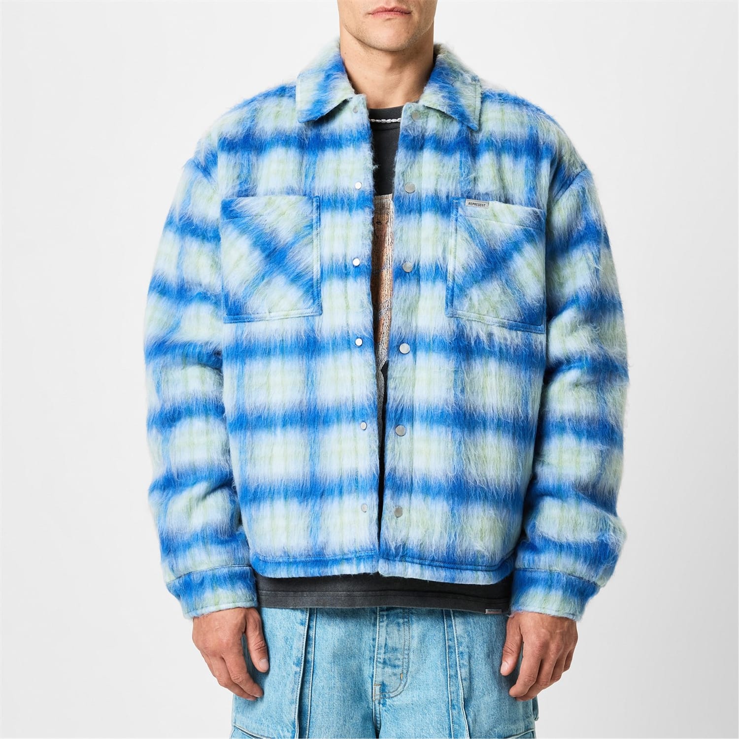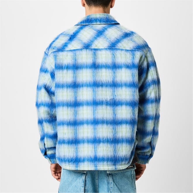- The textured check pattern adds a unique dimension to the overshirt, giving it a fashionable and contemporary edge.