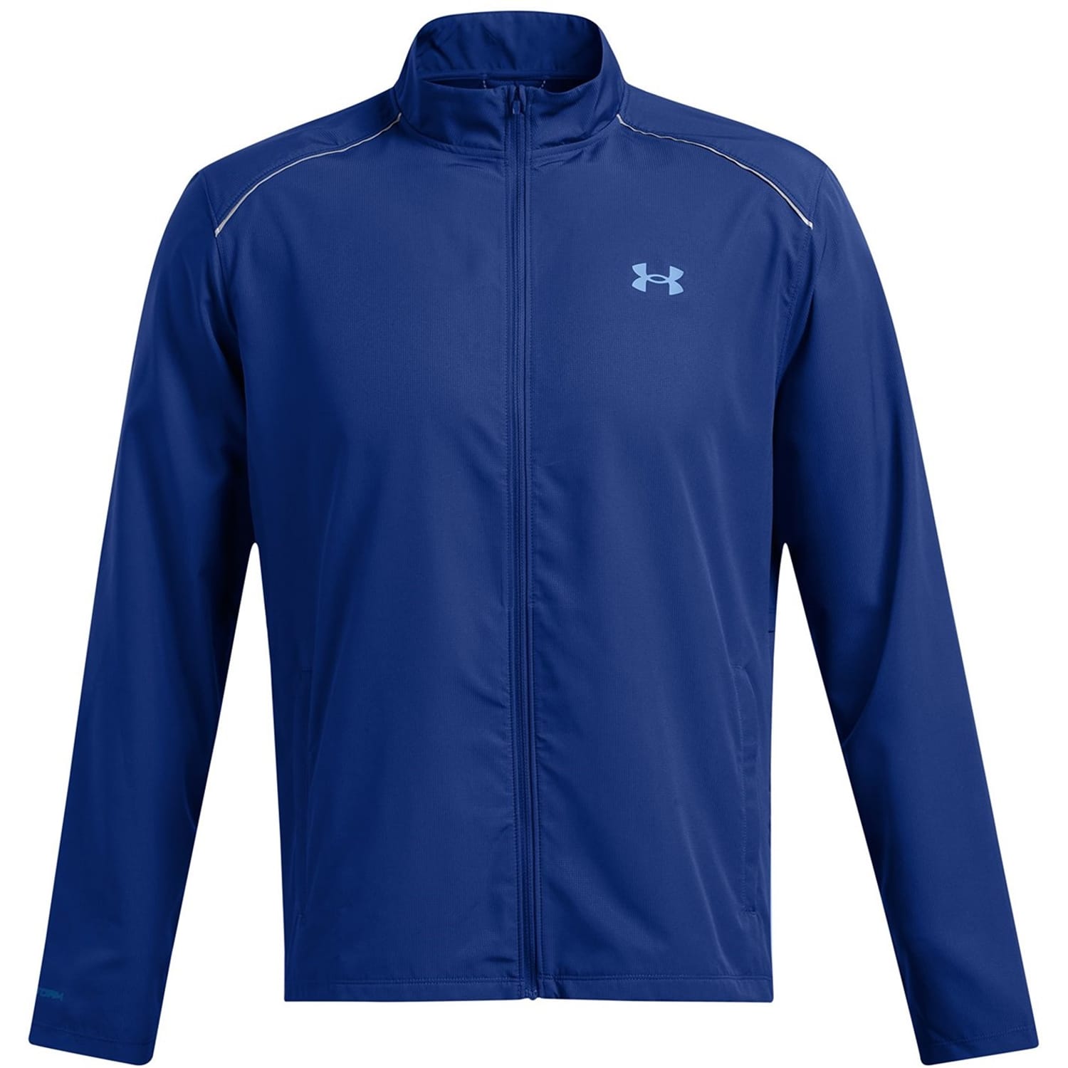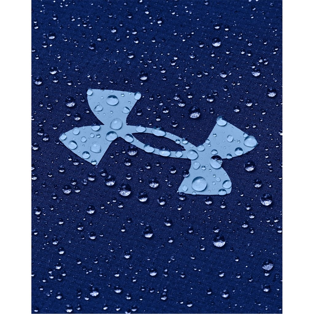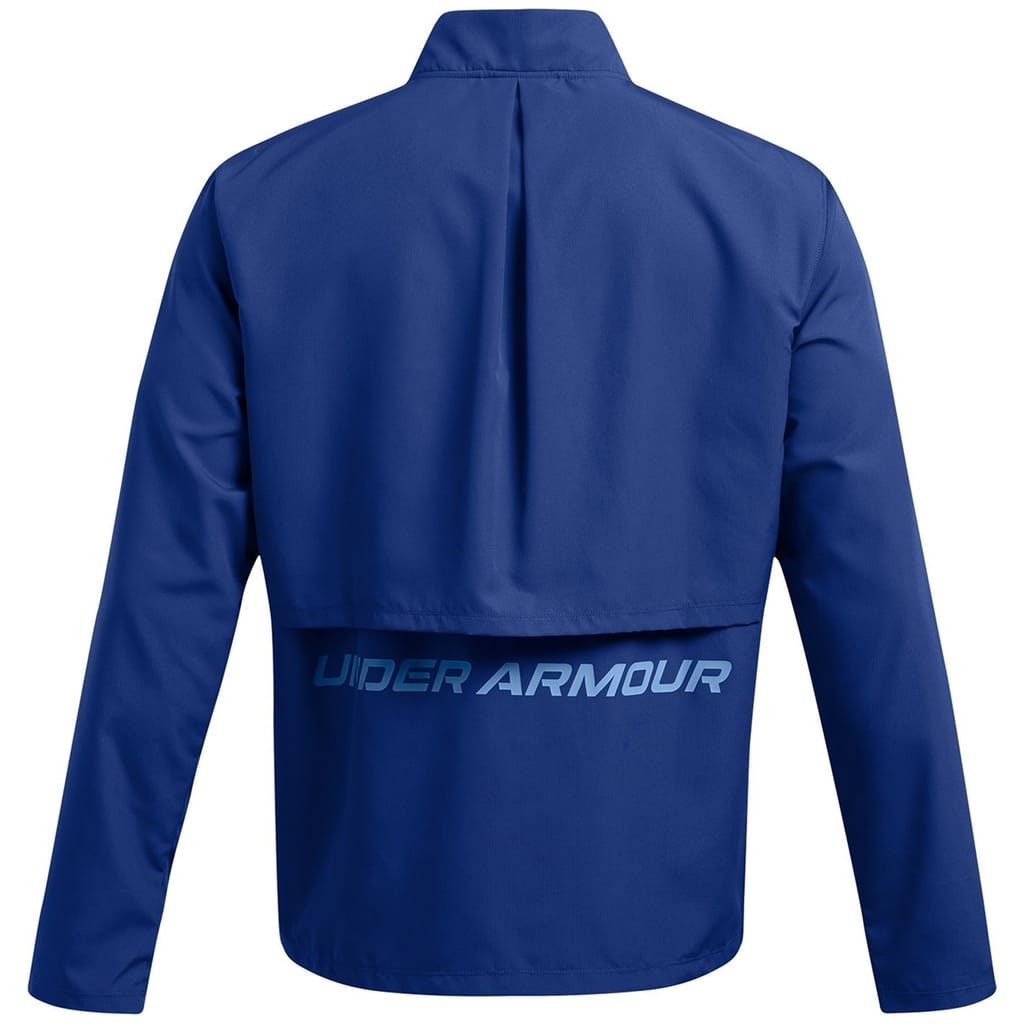 Crafted by Under Armour, this performance windbreaker jacket is part of the activewear collection. Featuring a high collar and a mock neck, it combines functionality with style. The jacket has a solid pattern and a regular fit, ideal for active pursuits. It is designed with a zipper closure and features a discreet logo, ensuring a sleek look. -