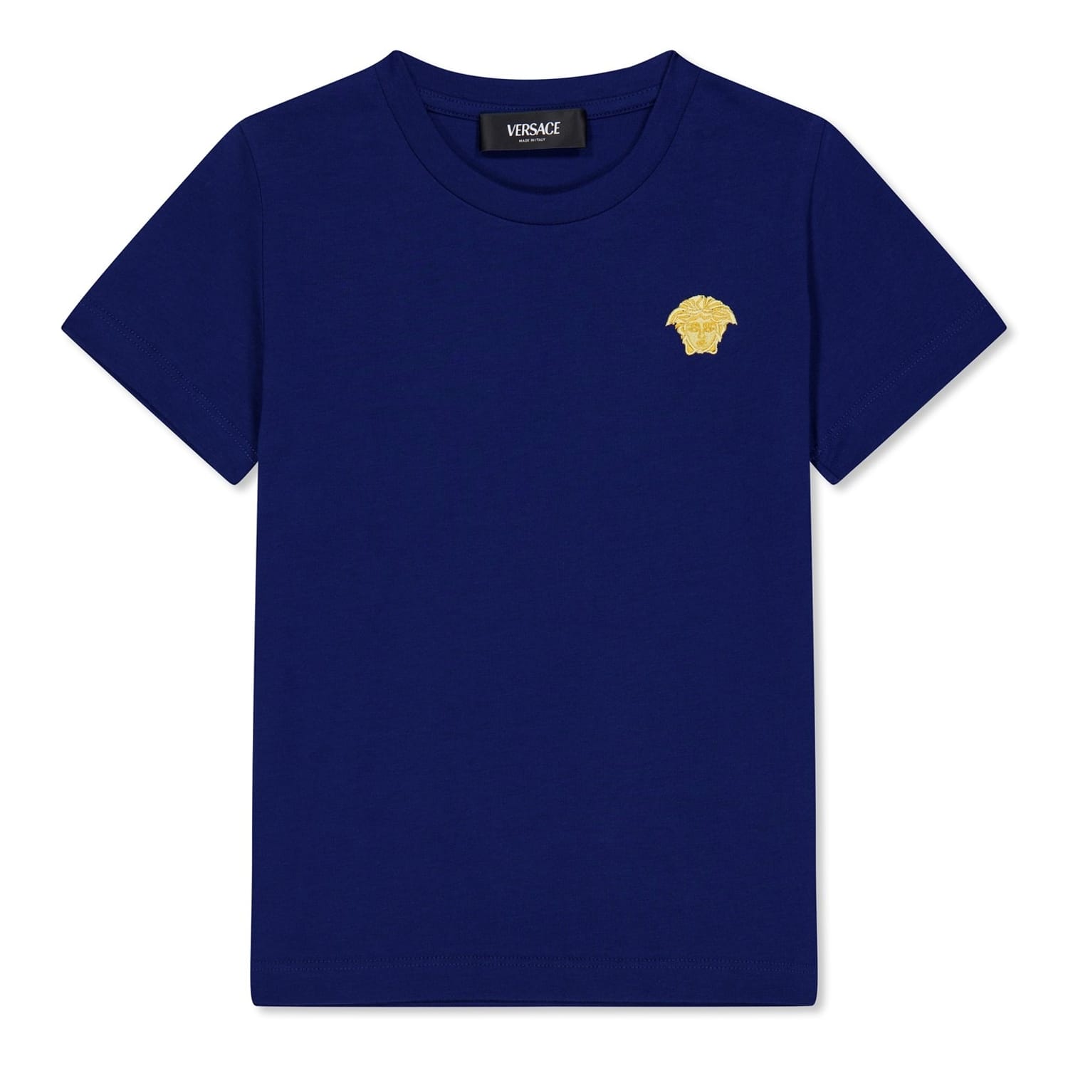 Refresh your little one's collection with this Children's Small Logo T Shirt from Versace. Constructed from 100% cotton, this t shirt is cut in a regular fit and features short sleeves with a ribbed crew neckline, a straight hemline and elasticated trims for a comfortable wear. Decorated in a solid colouring throughout, the look is finished with the brand's iconic Medusa logo embroidered to the chest for instant brand appreciation. Hand wash only.