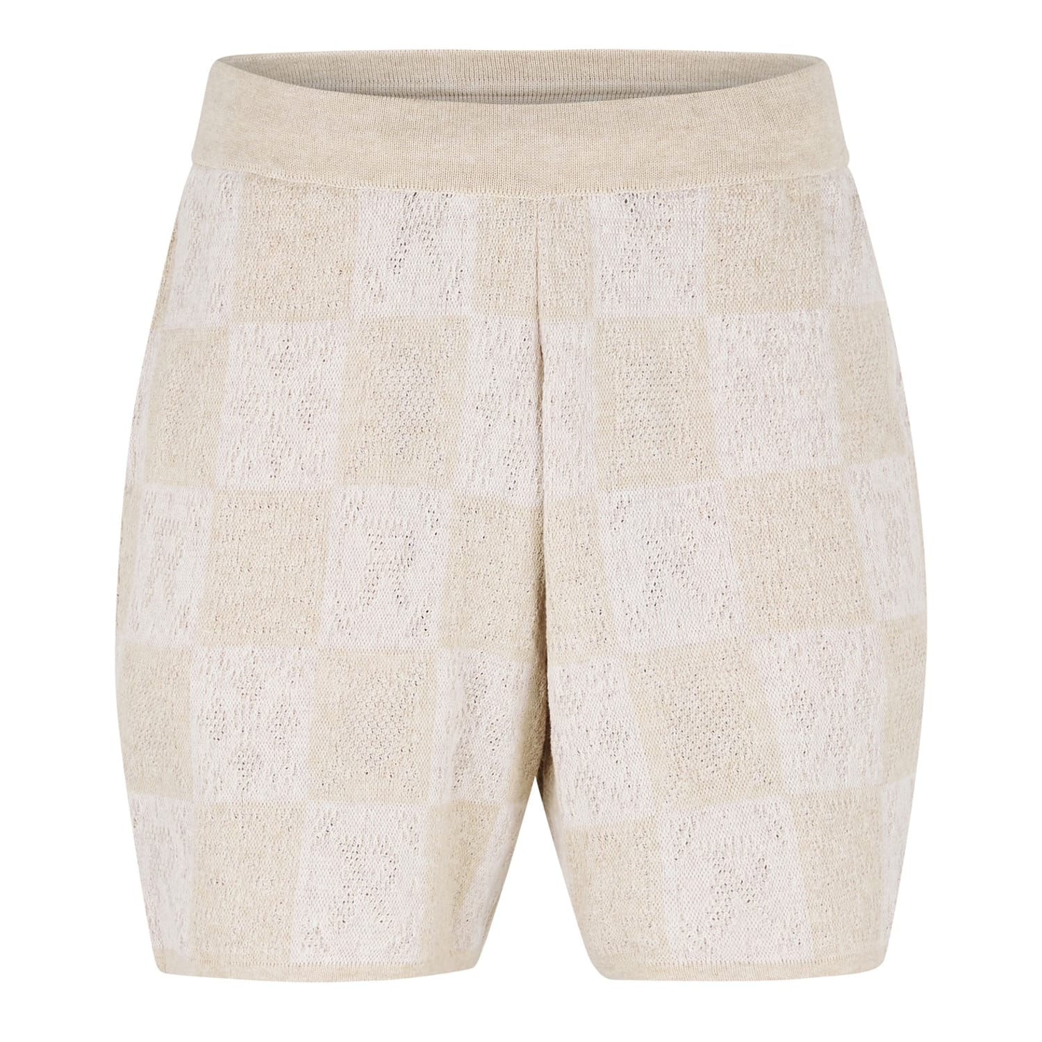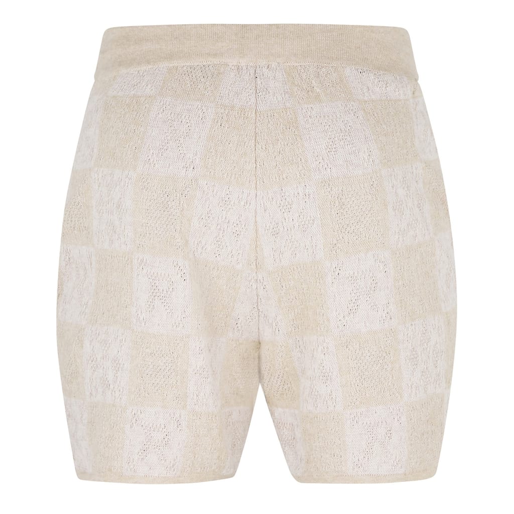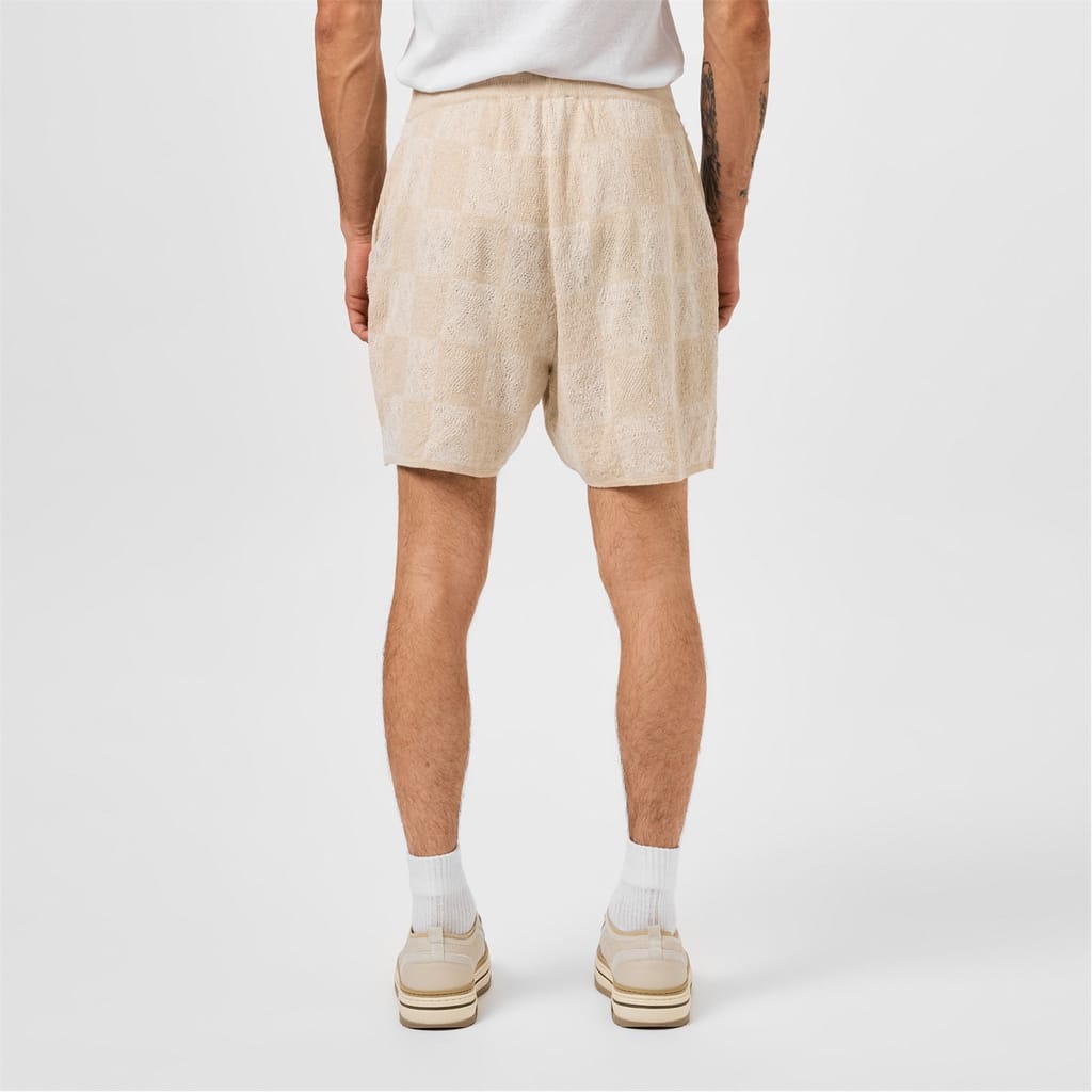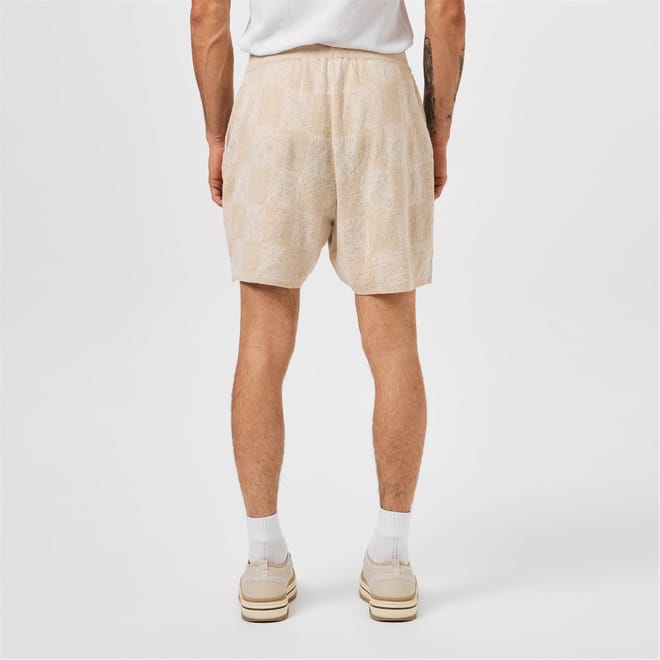These Represent sweat shorts feature a stylish checkerboard pattern, perfect for a casual look. Designed with a comfortable drawstring closure, they offer an easy fit. The crochet detail adds a unique touch, making these shorts a standout piece in any wardrobe. -