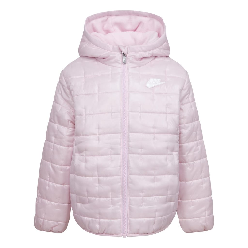 This Nike puffer coat is designed for infants, offering a heavy-weight, short-length style with a hooded neckline. It features a solid pattern and a regular fit, ensuring comfort and warmth. The coat is equipped with a zipper closure and showcases the iconic logo embellishment, making it a practical and stylish choice for little ones. -