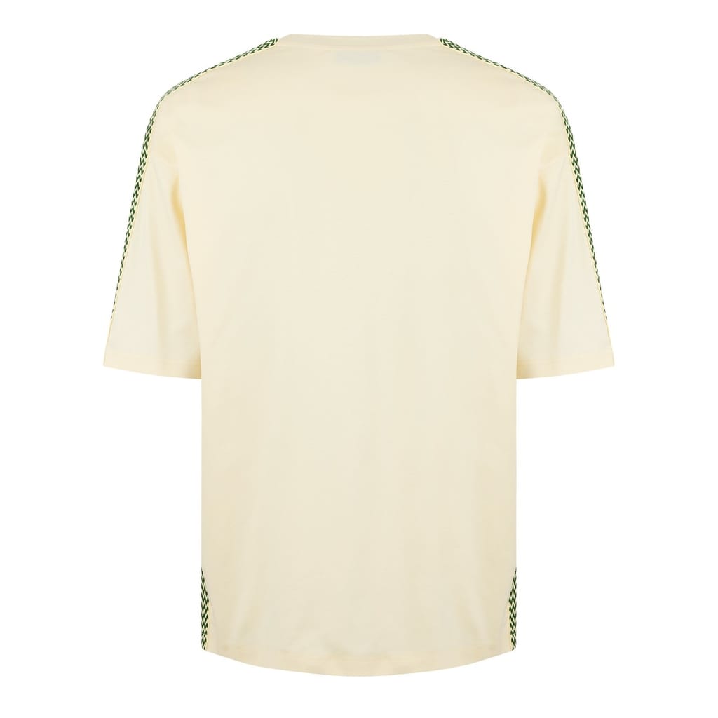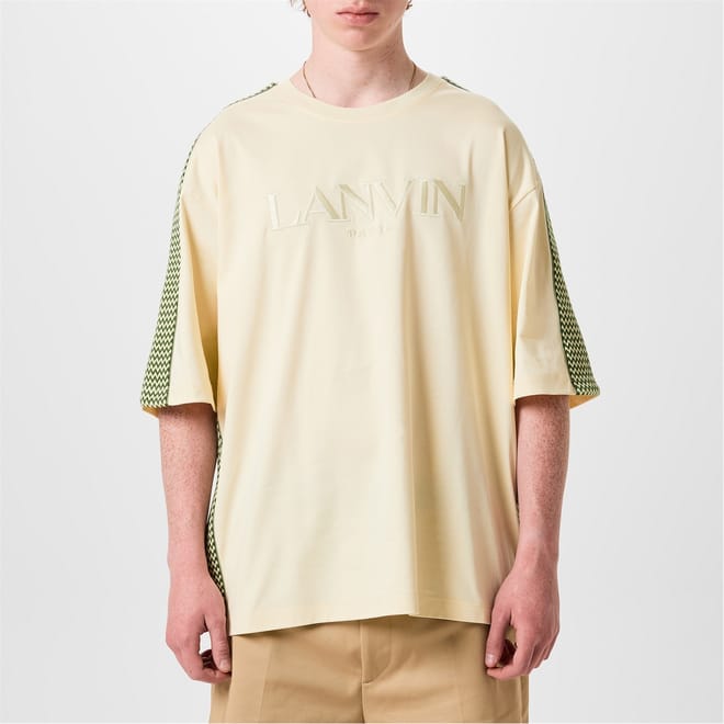 Step confidently into luxury with Lanvin's Embroidered Curb Trimmed T-shirt, a brand renowned for its exquisite craftsmanship and attention to detail. Adorned with the embroidered logo at the chest providing instant brand recognition. Perfect for both casual occasions and elevated evenings out, this short-sleeve top effortlessly blends sophistication with a modern edge.